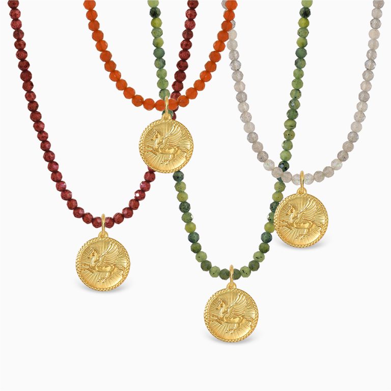 Our Pegasus good luck charm is inspired by ancient coins from Corinth, 550-300BC.