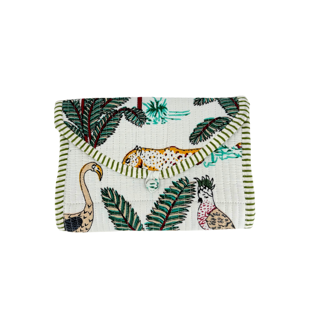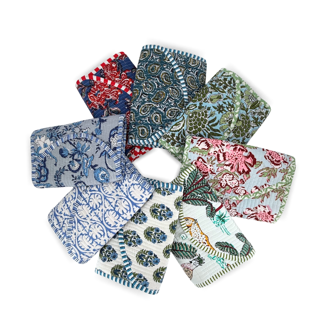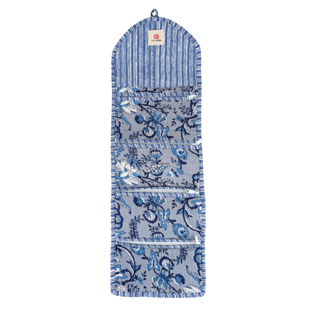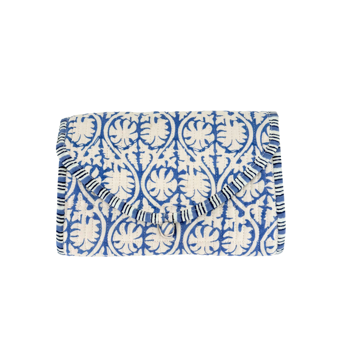 Block Print Quilted Travel Jewelry Roll Up