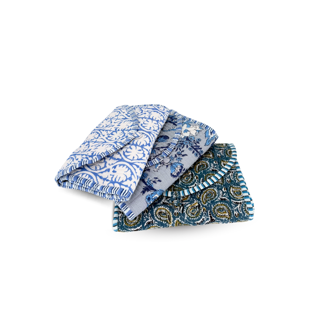 Keep your jewelry organized and protected when you travel. With four zipper compartments to secure your items inside, this jewelry roll up will easily become your must-pack travel accessory. Crafted from soft, quilted cotton, it features contrast piping and our exclusive patterns made with the time-honored tradition of Indian block printing.