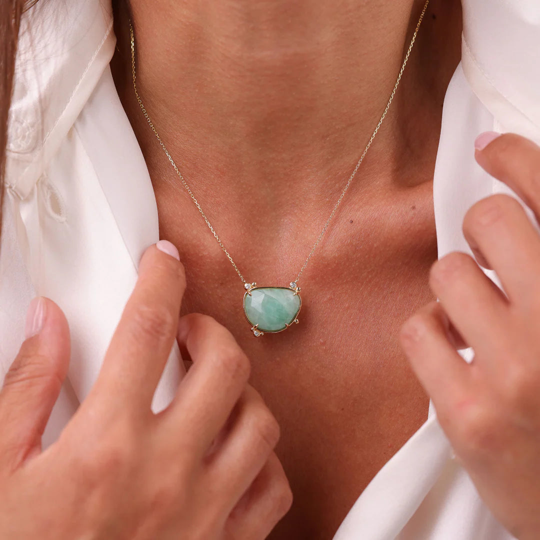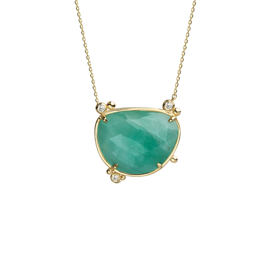 Gold Irregular Emerald Necklace with 3 Diamonds