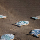 These hand-crafted ceramic pieces are designed as wall art, bringing color and character to your space—like fish gliding through a sunlit current. Shaped and painted by skilled artisans in Fayoum—an Egyptian oasis with a long tradition of pottery—each piece adds a playful, aquatic touch. Hang one for a spark of whimsy, or group a few to create your own underwater story across the wall. Each piece has a wire on the back for easy hanging from a nail.