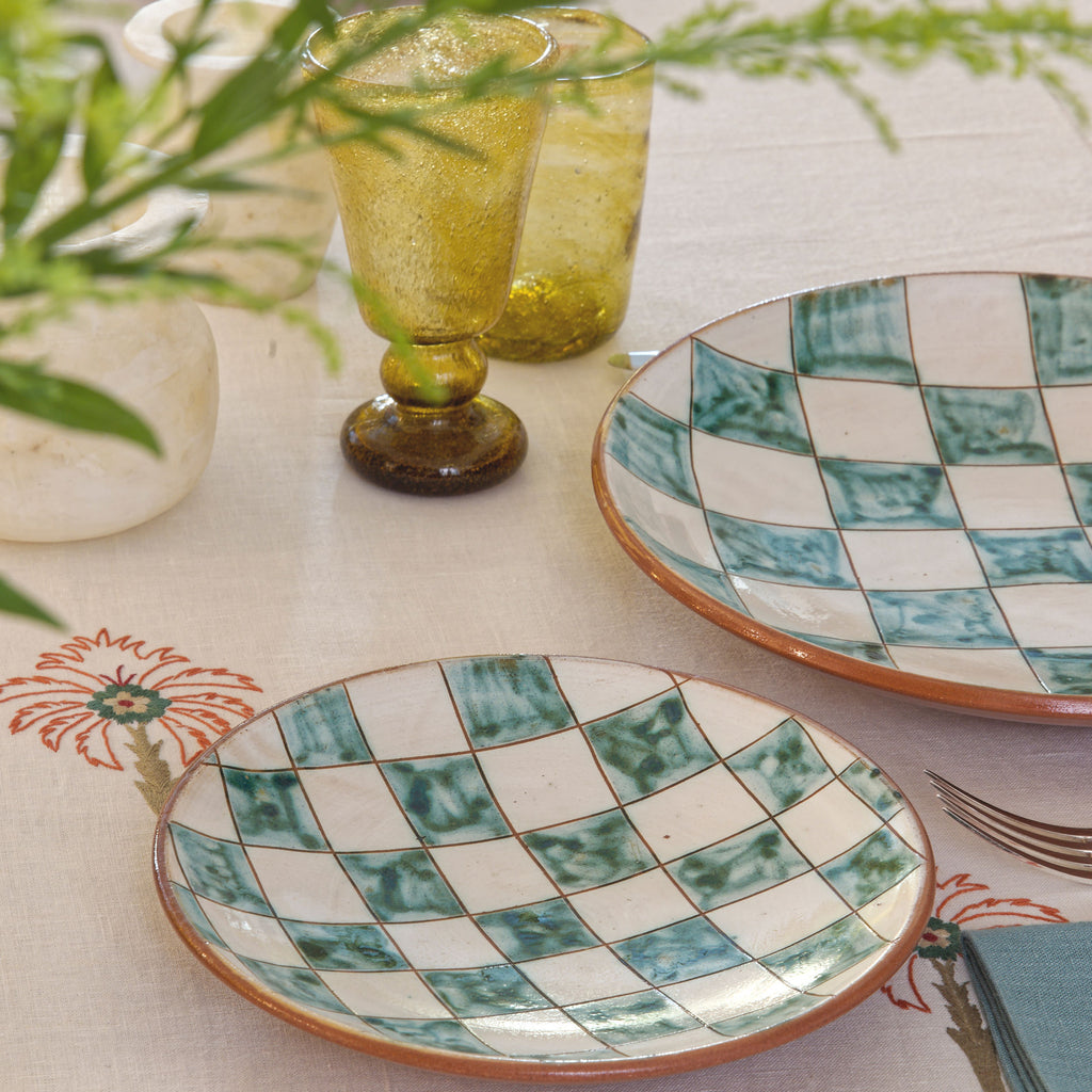 With a checkerboard design in green and white, our Tawla Dinner Plate will spark memories of nights playing boardgames with friends and family. Elevate the aesthetics of your kitchen and dining room with this piece.