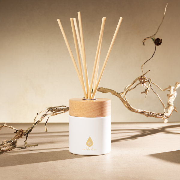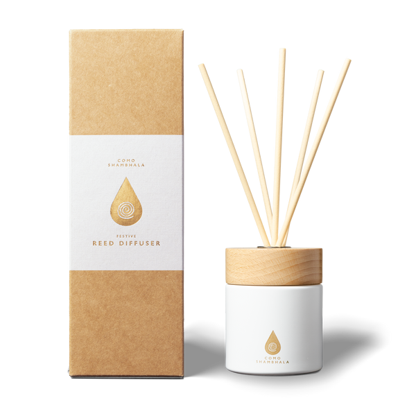 COMO Shambhala's seasonal blend is designed to evoke the cozy warmth of a European holiday in the mountains. Once the reeds are immersed, notes of fresh pine and orange melt into spiced cinnamon and nutmeg — perfect for enveloping larger rooms with a lasting scent.