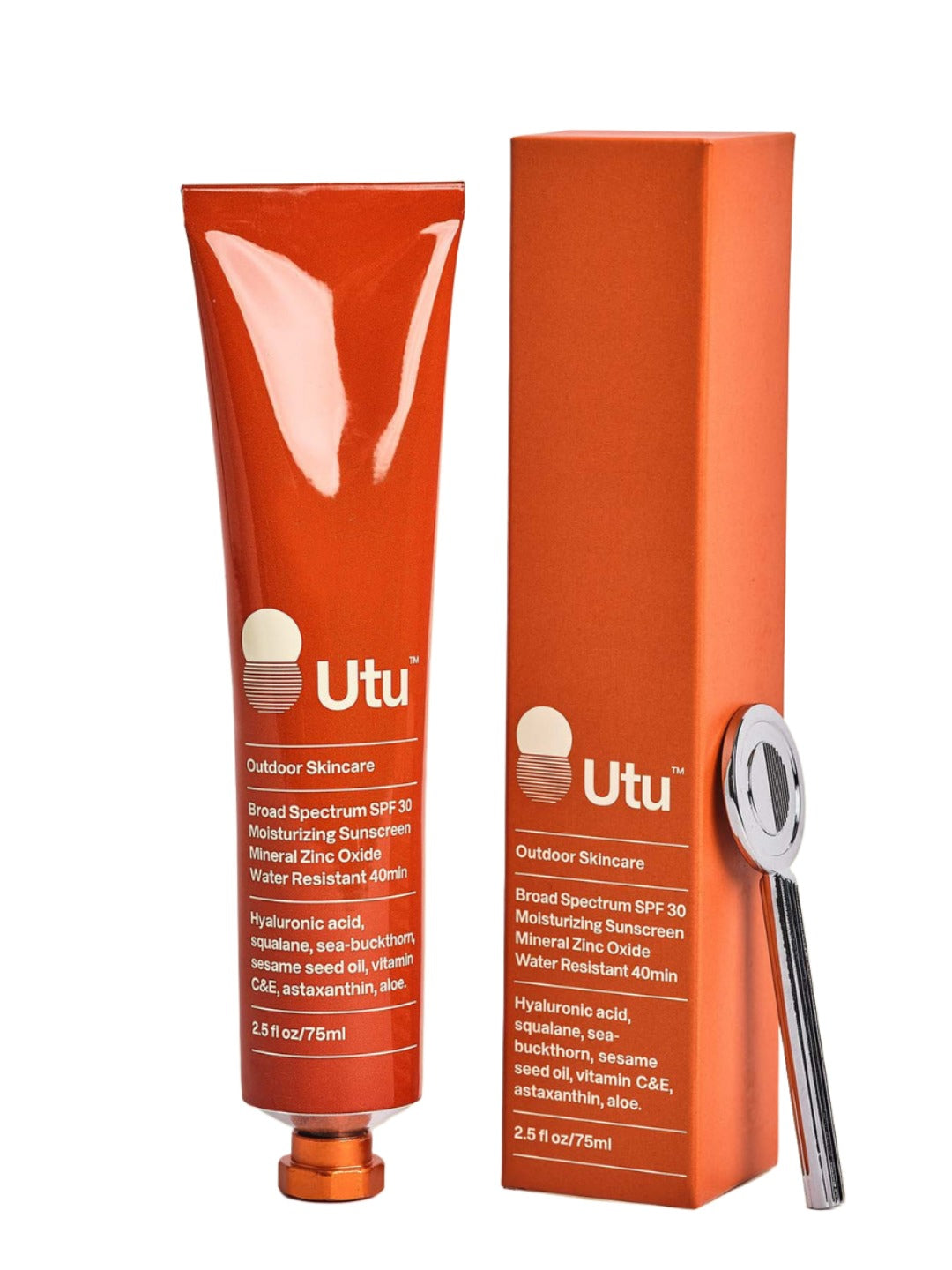 Utu's Broad Spectrum SPF 30 Moisturizing Sunscreen is specially formulated to protect, nourish, and rejuvenate your skin from the harsh elemental stressors encountered outdoors, including UVA + B radiation, temperature extremes, wind, altitude, and saltwater. These elements, individually and combined, pose significant threats to skin health, leading to issues like melanoma, hyperpigmentation, xerosis, oxidative stress, decreased elasticity, and rosacea.