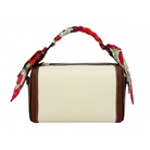 Cubita is the "trunk" shoulder bag in cream heavy cotton and kenia brown calf leather. The lining is in up-cycled cotton - linen fabric. Made with "in forma" saddlery construction and all leather edges are hand painted. It is equipped with a small handle and a shoulder strap, both removable. The handle is decorated with particular hand-made tailoring ribbon made in pure silk in redd and light green rose garden design.