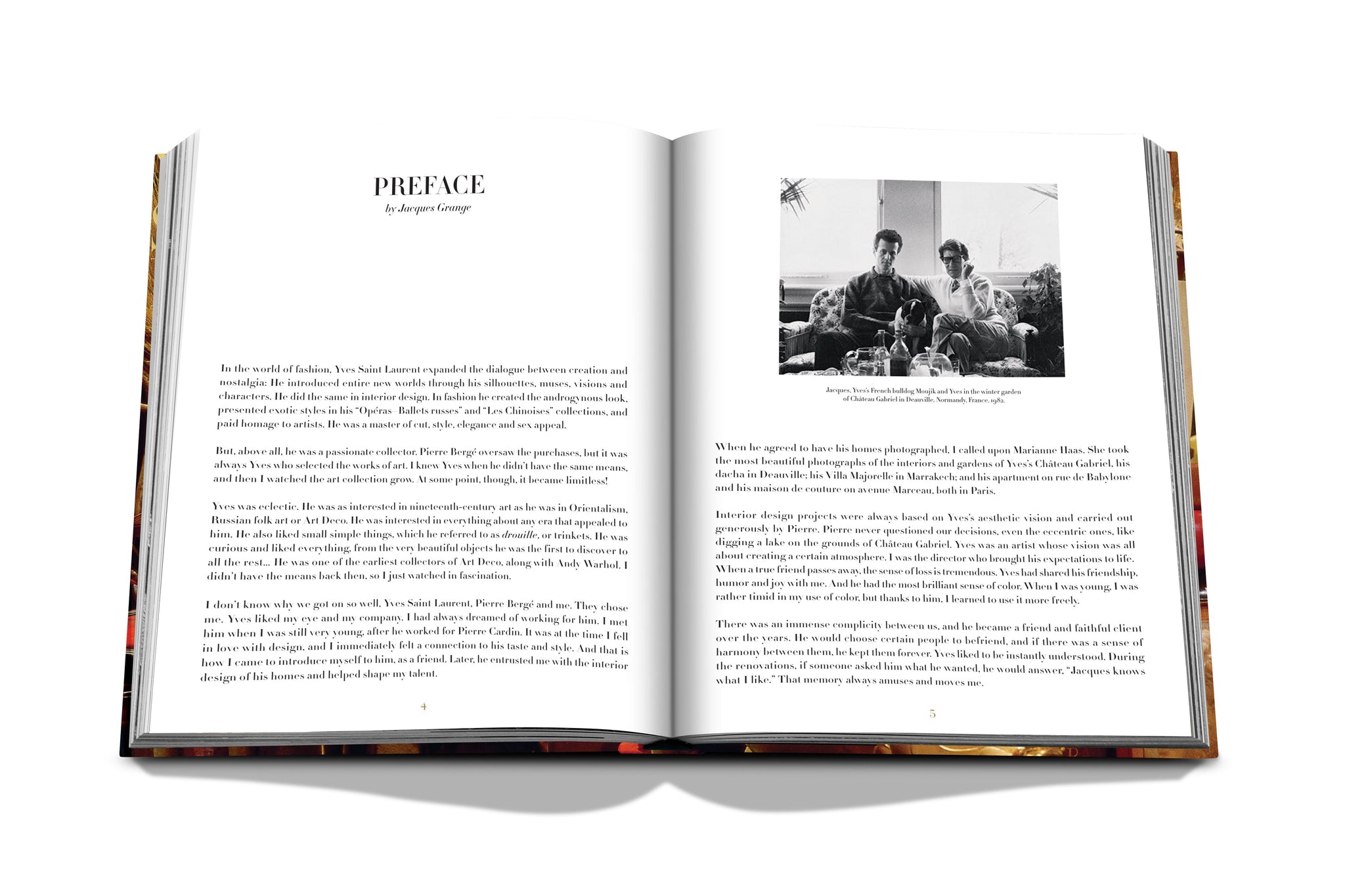 Readers are invited to discover the couple’s savoir-faire through the most exquisite photographs of the interiors and gardens of Yves’s Château Gabriel, the dacha in Deauville; the Villa Majorelle in Marrakech; the apartment on rue de Babylone and his maison de couture on avenue Marceau. With photographs by Marianne Haas, and texts and special contributions from Jacques Grange, Catherine Deneuve, Betty Catroux, Laurence Benaïm, Louis Benech and other members of Yves’ tribe, the creative couple’s legacy lives on.