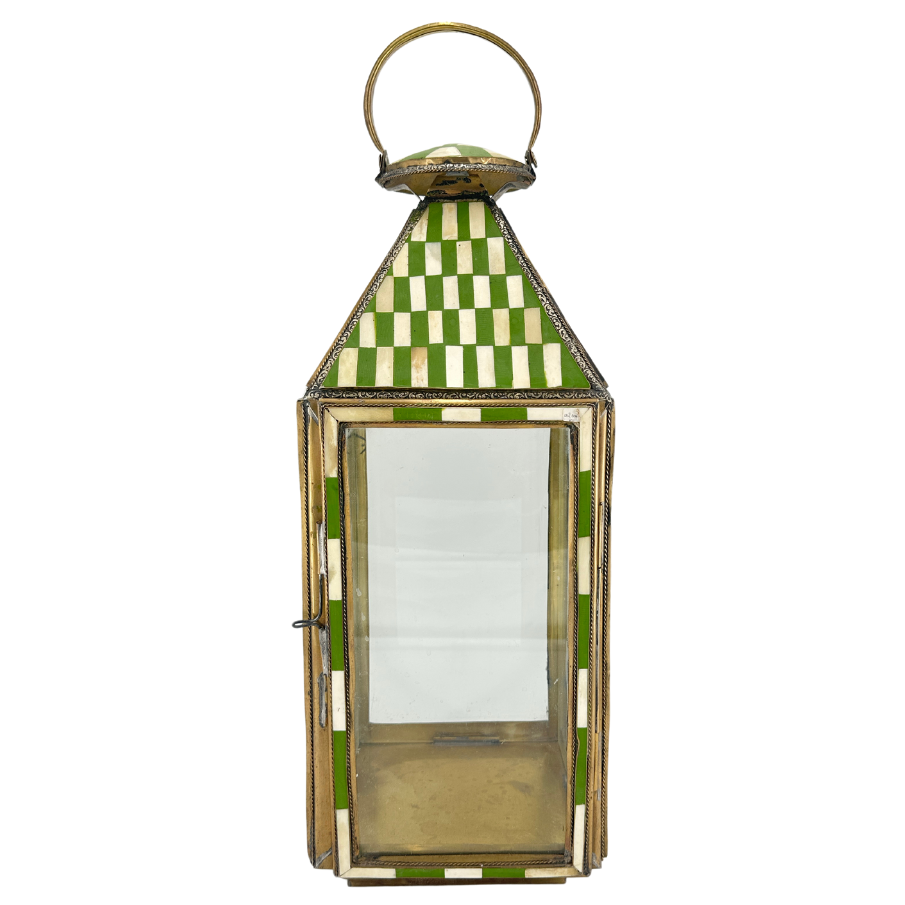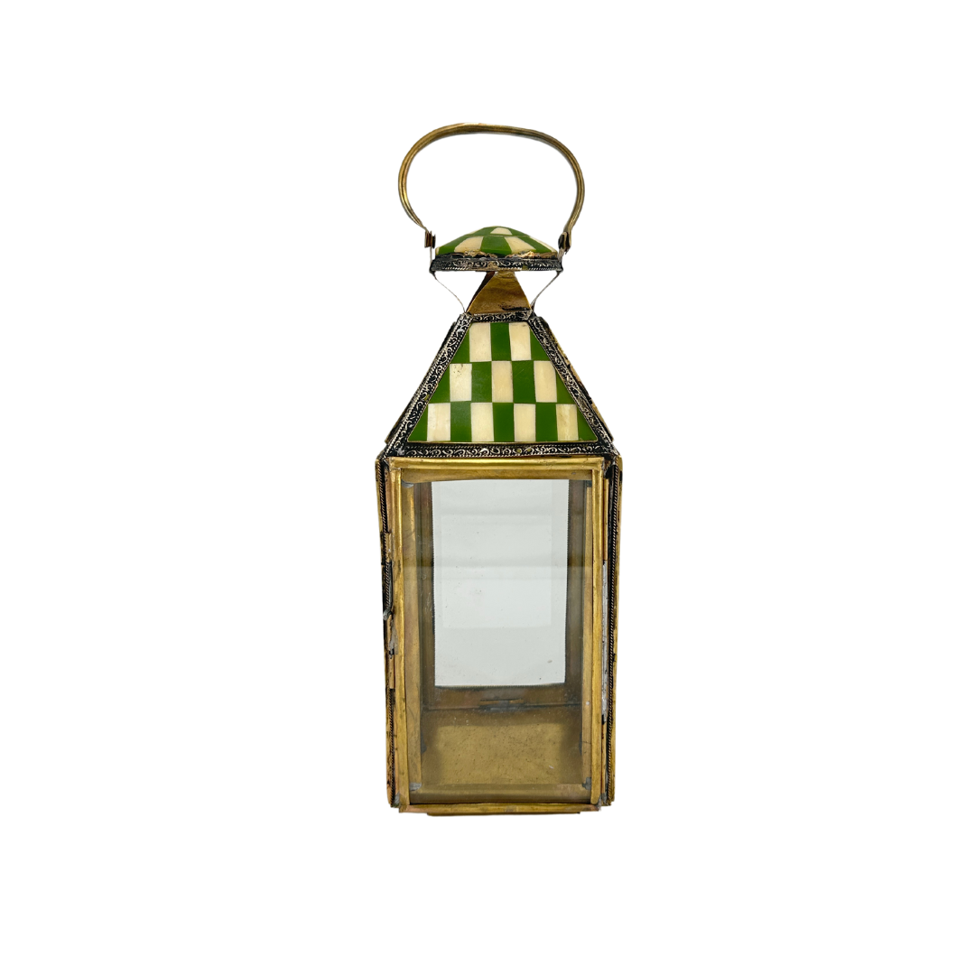 Illuminate your space with our Moroccan lantern which features a stunning checkerboard pattern in a bright green.