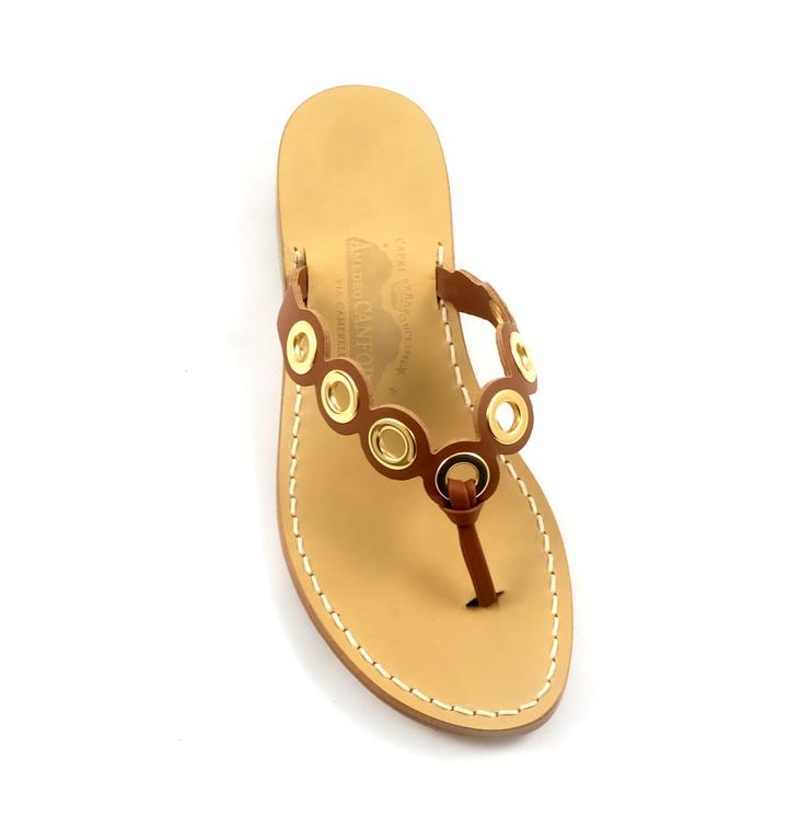 Canfora was founded in 1946, and became internationally famous in 1962 when the sandals were sought out by Jacqueline Kennedy on a visit to Capri as First Lady. She ordered several pairs of sandals, including the “K” style which was designed especially for her by Amedeo Canfora. Every sandal is entirely hand sewn from the finest Italian leather, and the quality is exceptional.