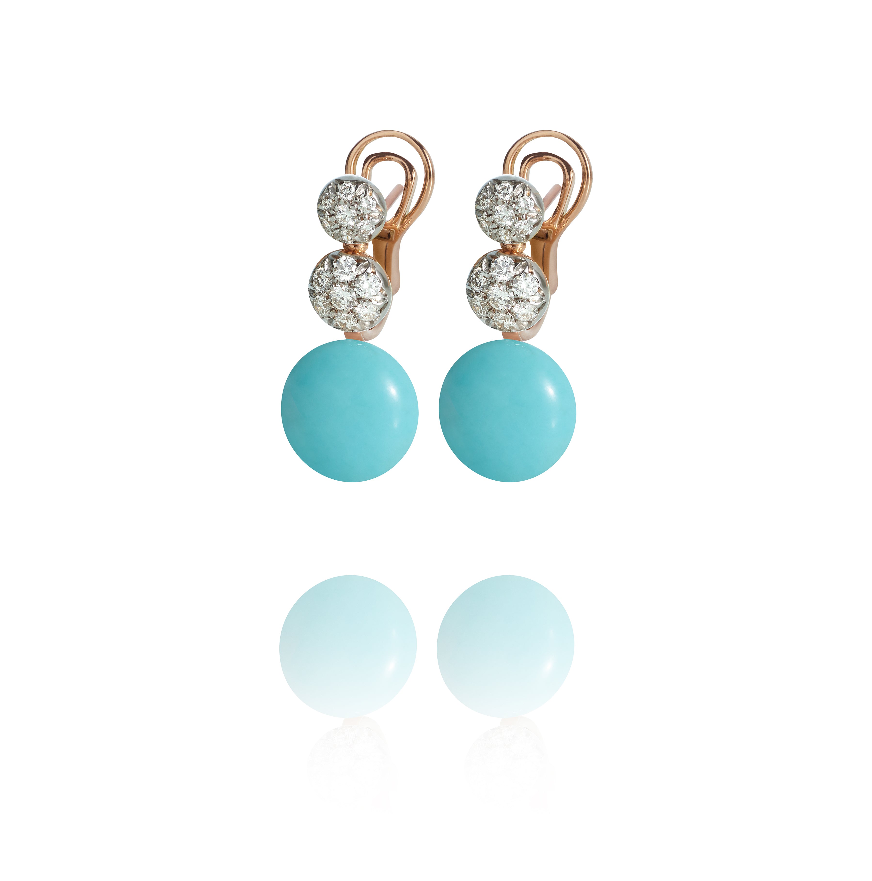 Chantecler Capri "Bon Bon" Turquoise and Diamond Drop Earrings in 18K Rose Gold