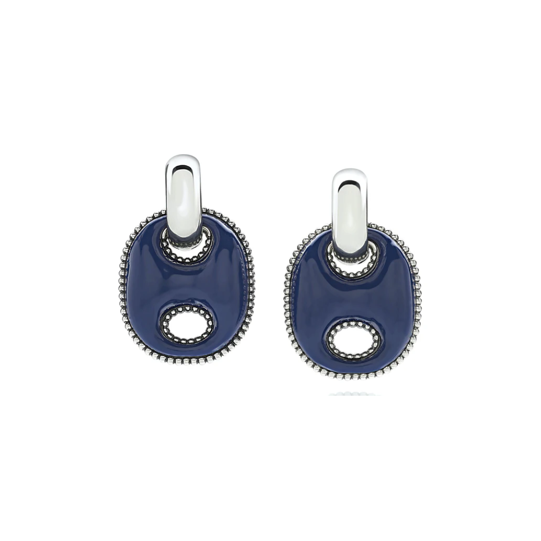 Capriness Marina Chain earrings in silver and blue enamel.