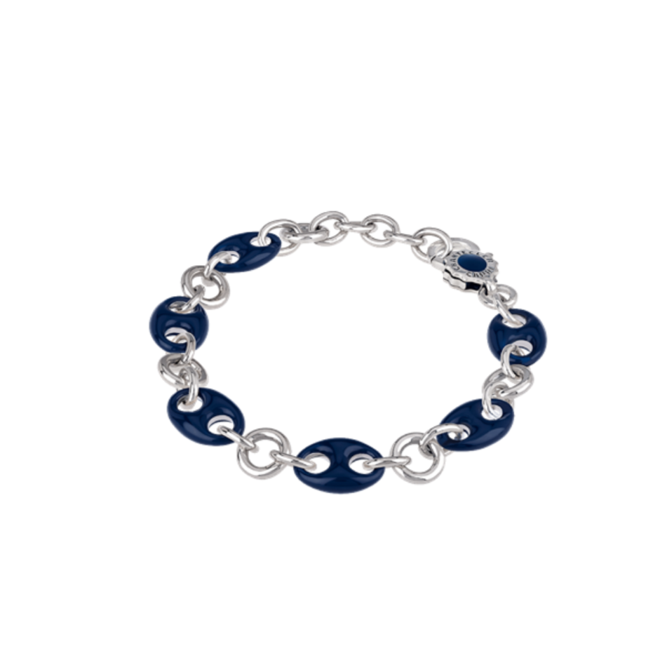 Capriness 18cm Marina chain bracelet in silver and blue enamel.