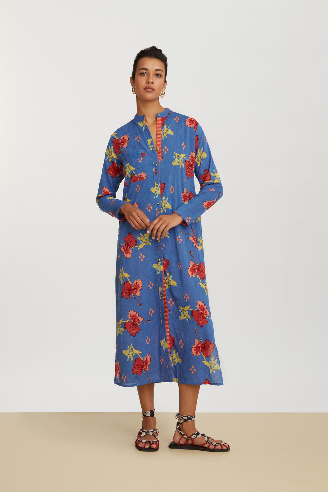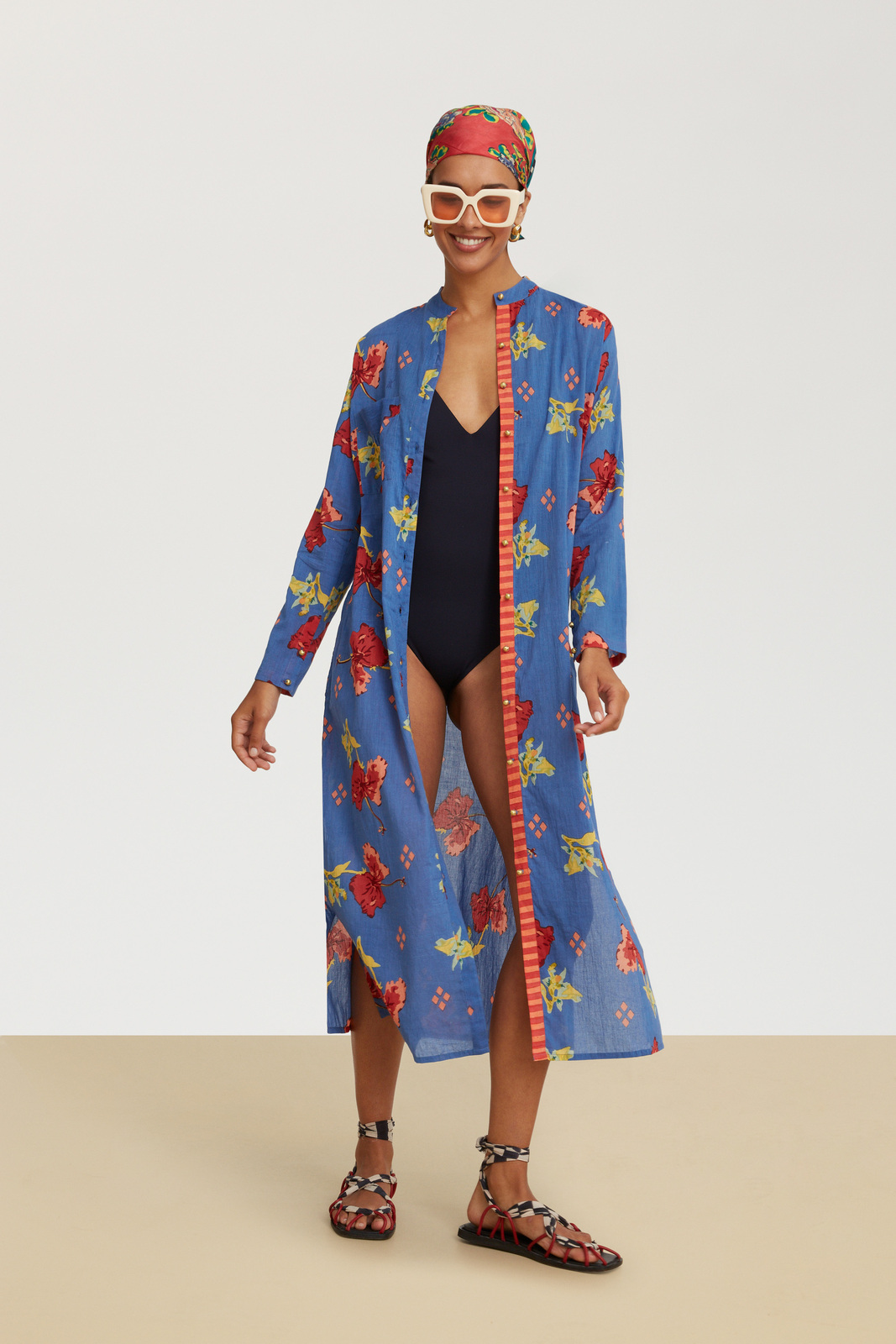 Lisa Corti Long Open Kurta in Ibisco Royalblue