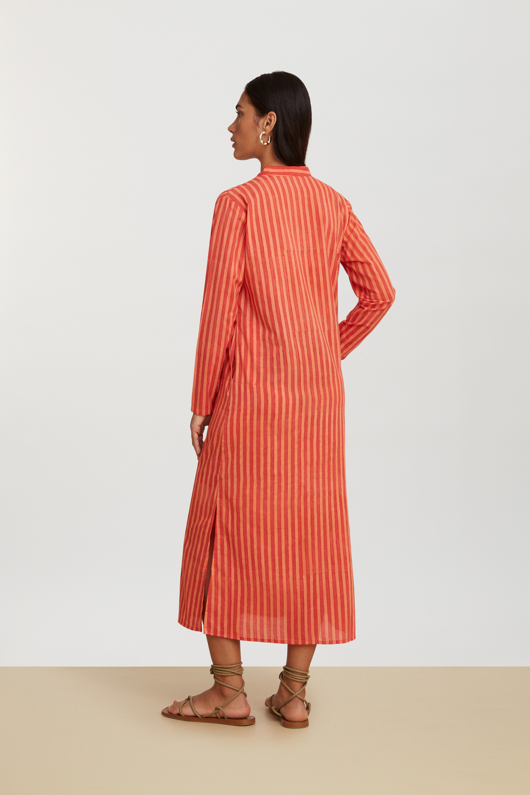 Lisa Corti Long Open Kurta in Mini Stripes Peach