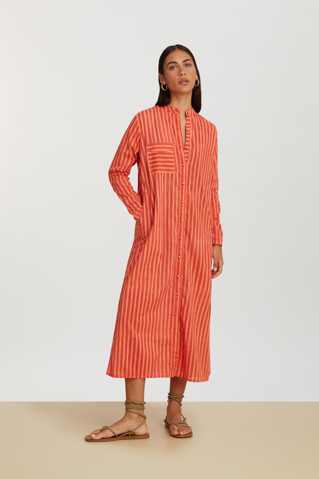 The Long Kurta demonstrates the most iconic shape crafted by Lisa Corti’s inspired by the traditional Indian Kurta shape but with a twist of contemporary charm exuding artisanal dedication to craftsmanship. This piece represents the transformation of fabrics into transgenerational and versatile ready-to-wear garments. The Long Kurta doubles up as a perfect cover-up for beach days as well as being the perfect statement light-weight dress. Crafted from 100% malmal cotton this dress is soft to the touch and tailored to fit all.