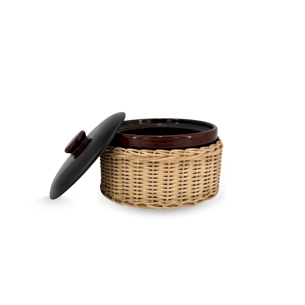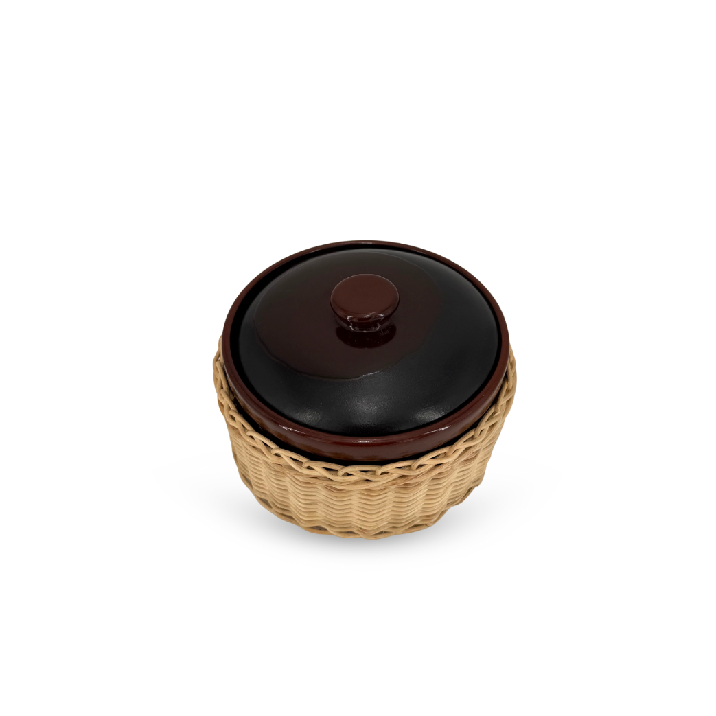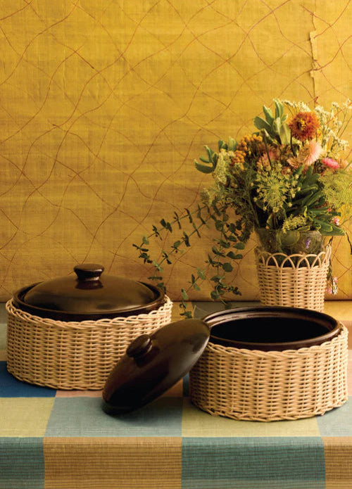 Introducing the Amany casseroles. From oven to table, these elegant pieces are perfect for gratifying winter meals that are intimate, comforting, and full of warmth. Each casserole is handcrafted in Egypt, from the dark chocolate brown lidded pot, to the wicker sleeve.