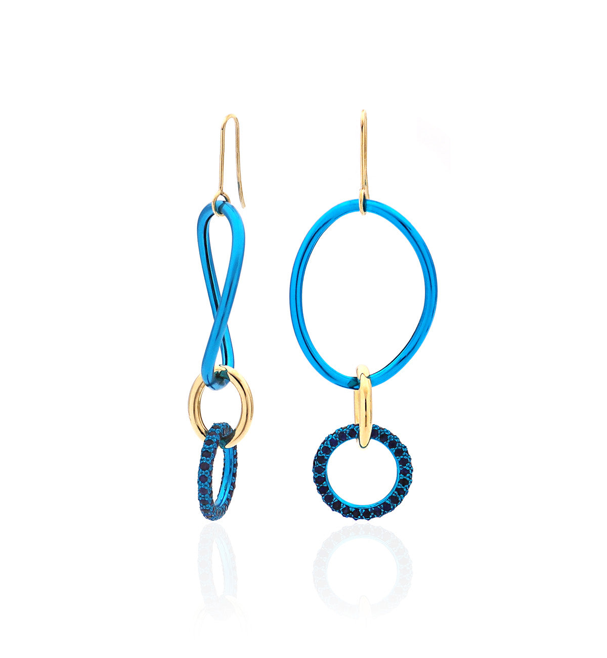 Faraone Mennella "Stella" 18K Gold Earrings Blue Sapphires