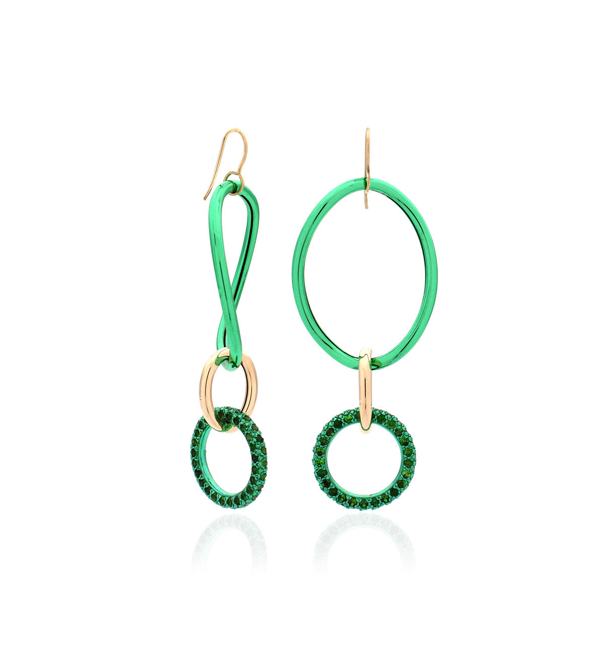 18K yellow gold, sterling silver with 4.05ct Tsavorite - Length of earrings 80mm, width approximately 26mm - small link
