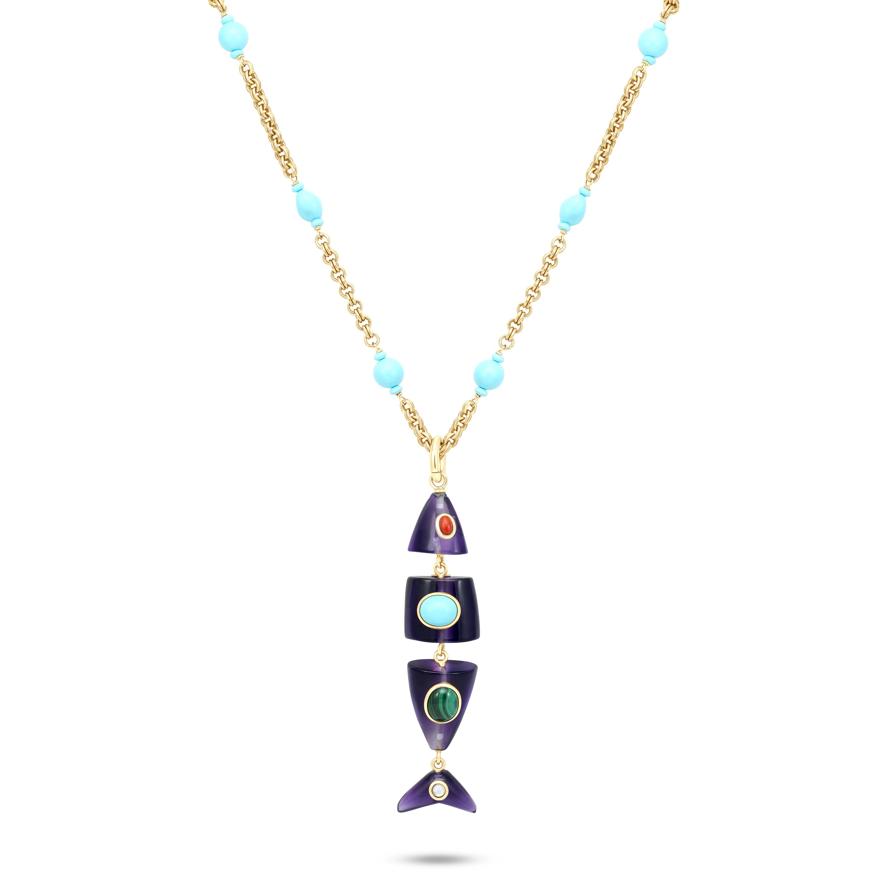 Grazia & Marica Vozza Large Fish Amethyst, Mother of Pearl, Turquoise & Coral Necklace