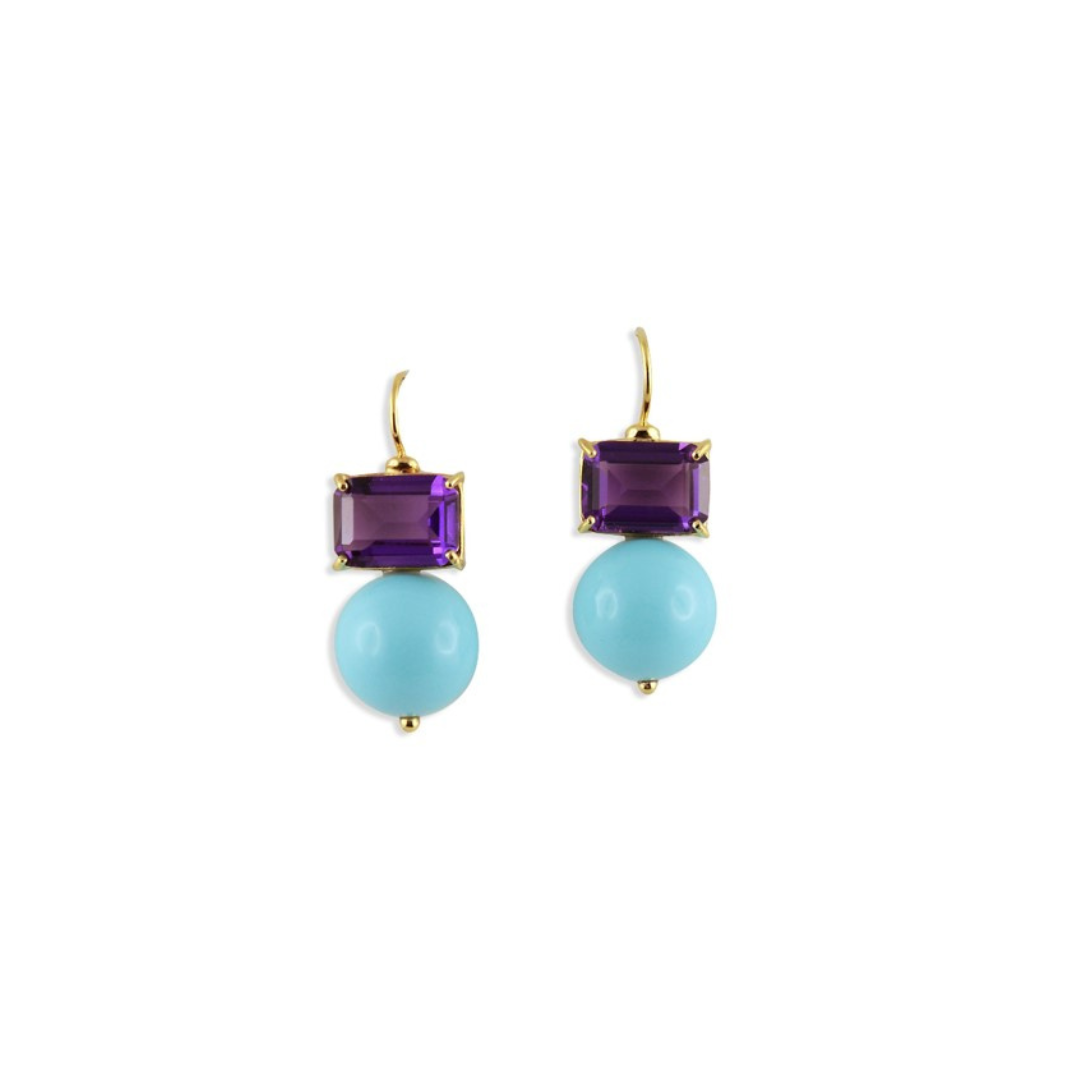 Grazia & Marica Vozza Stone & Boule Earrings in Amethyst and Turquoise