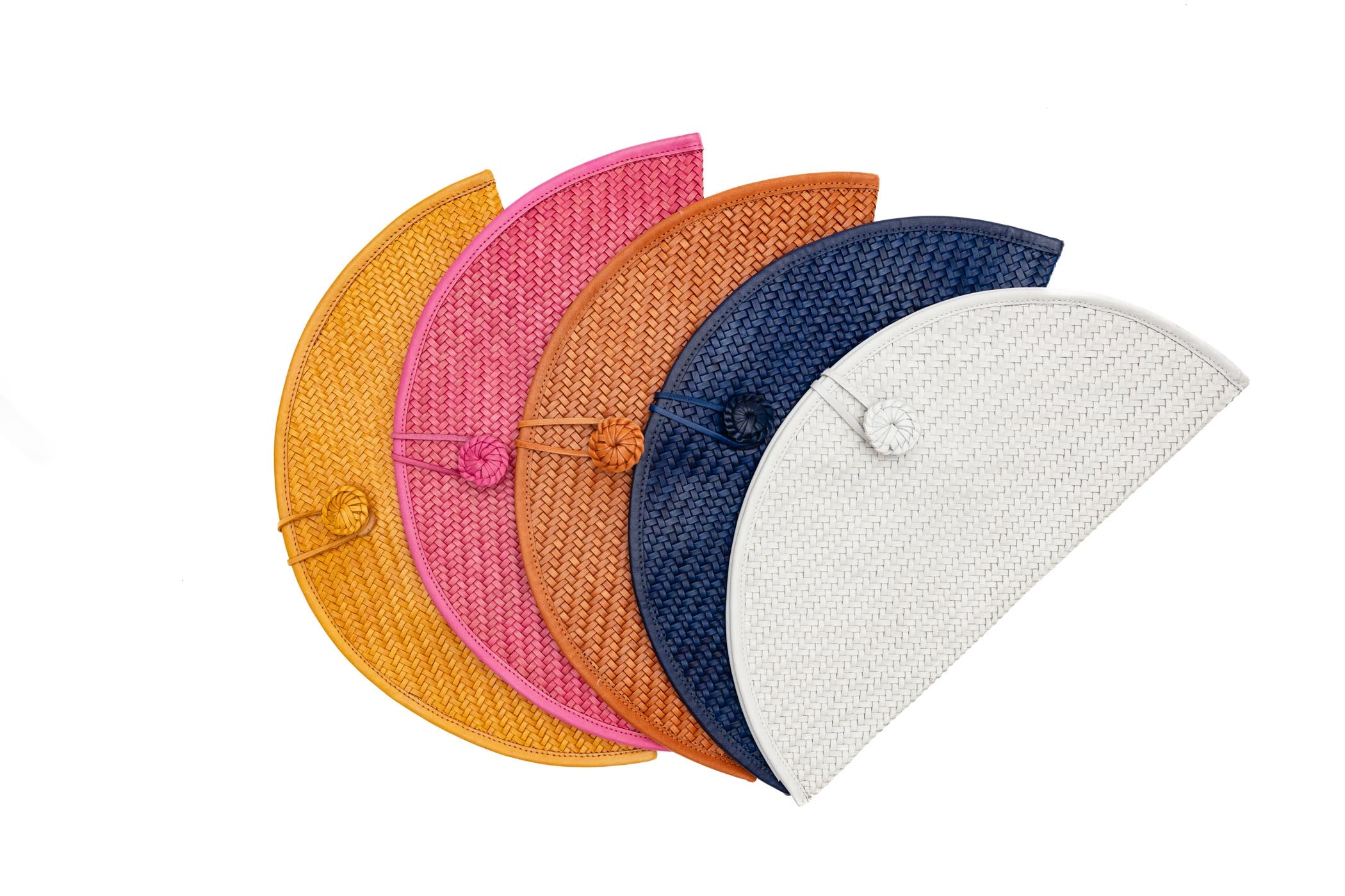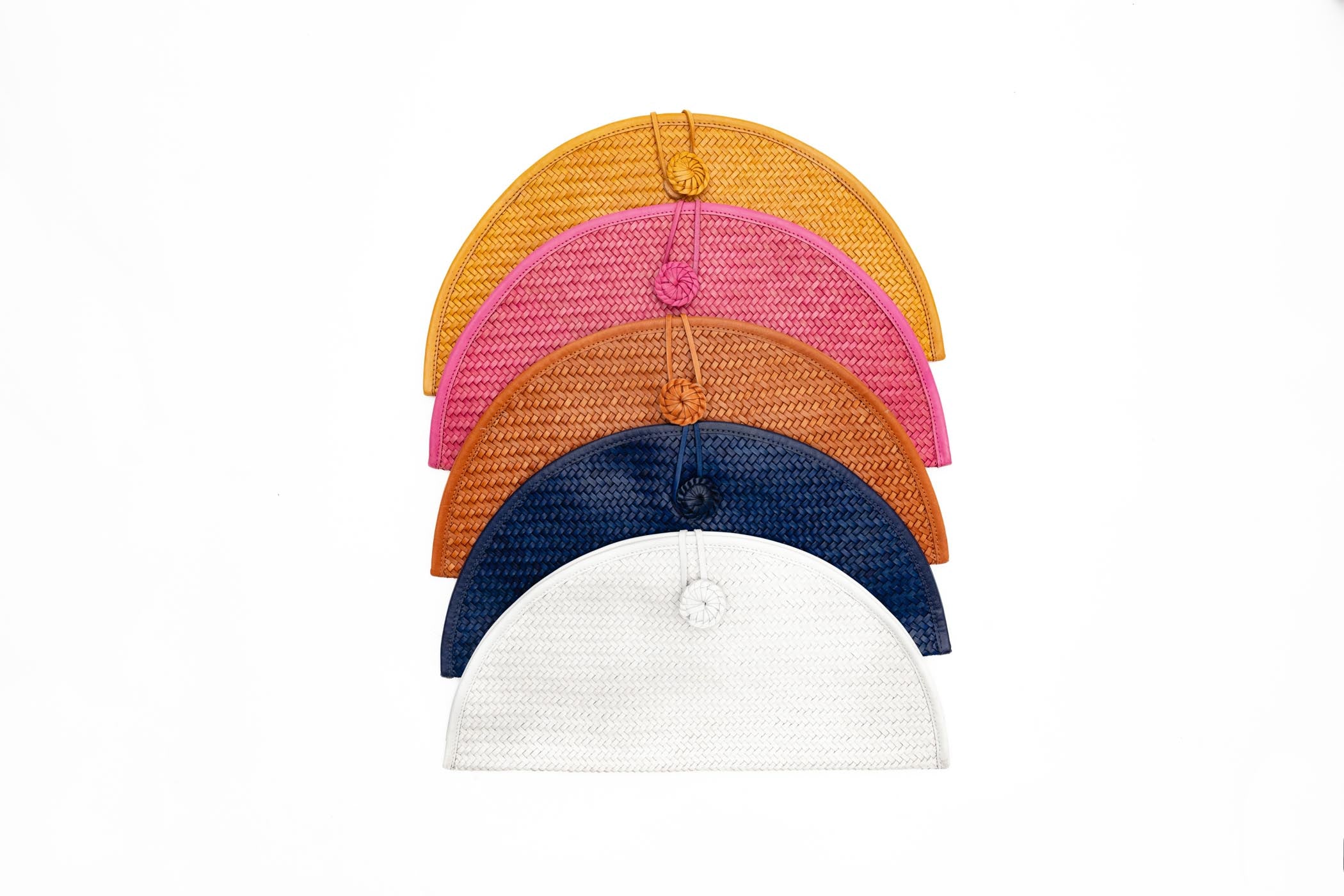 Exquisite woven leather clutch handmade in Colombia.