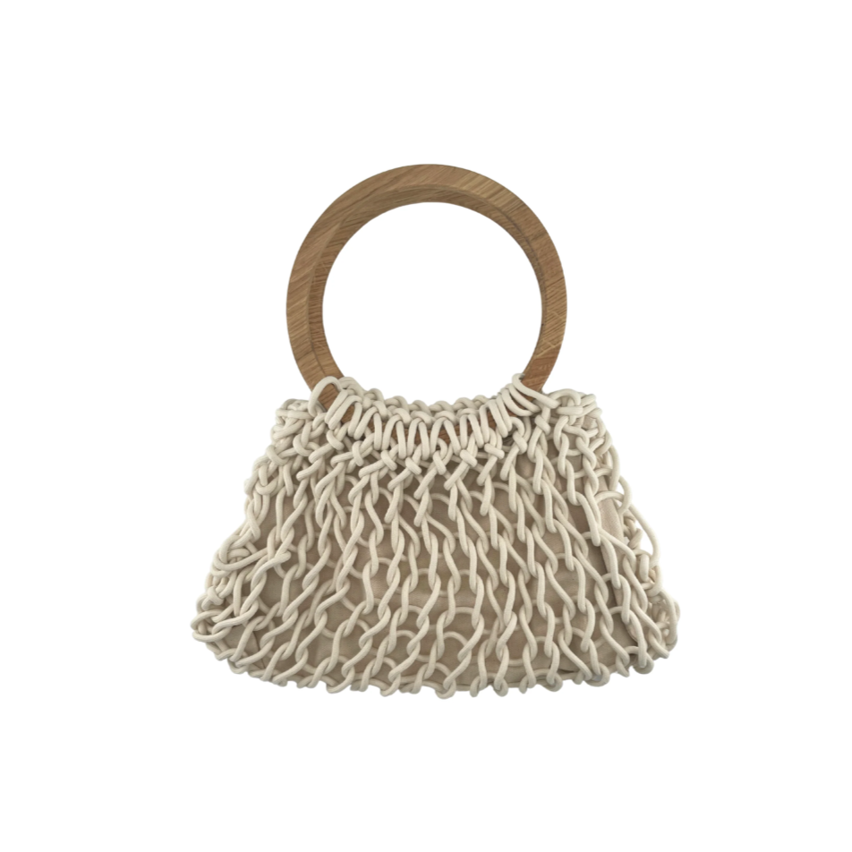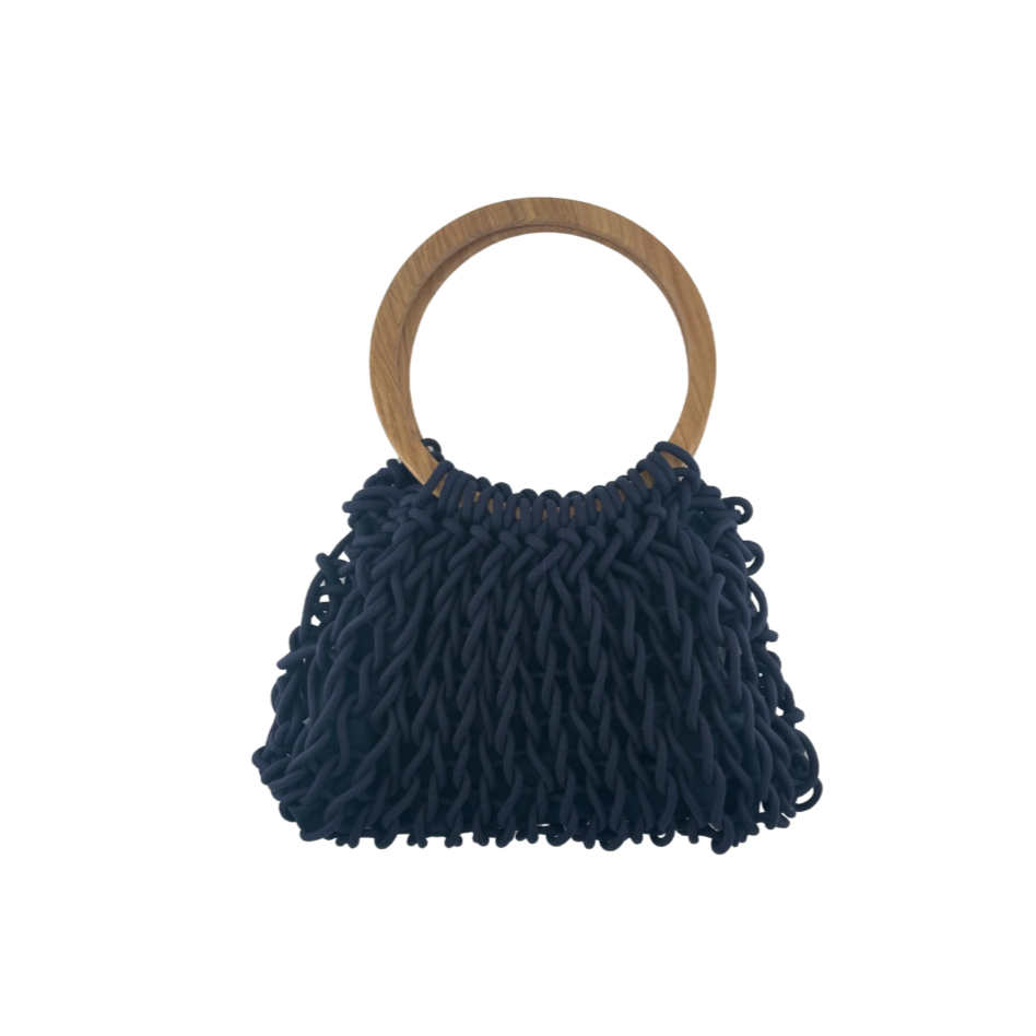 This sustainable handbag, handcrafted in Perugia, Italy from organic cotton ropes originally produced as cotton wicks for oil lamps. One-of-a-kind wooden handles. Each piece is handmade and thus unique.