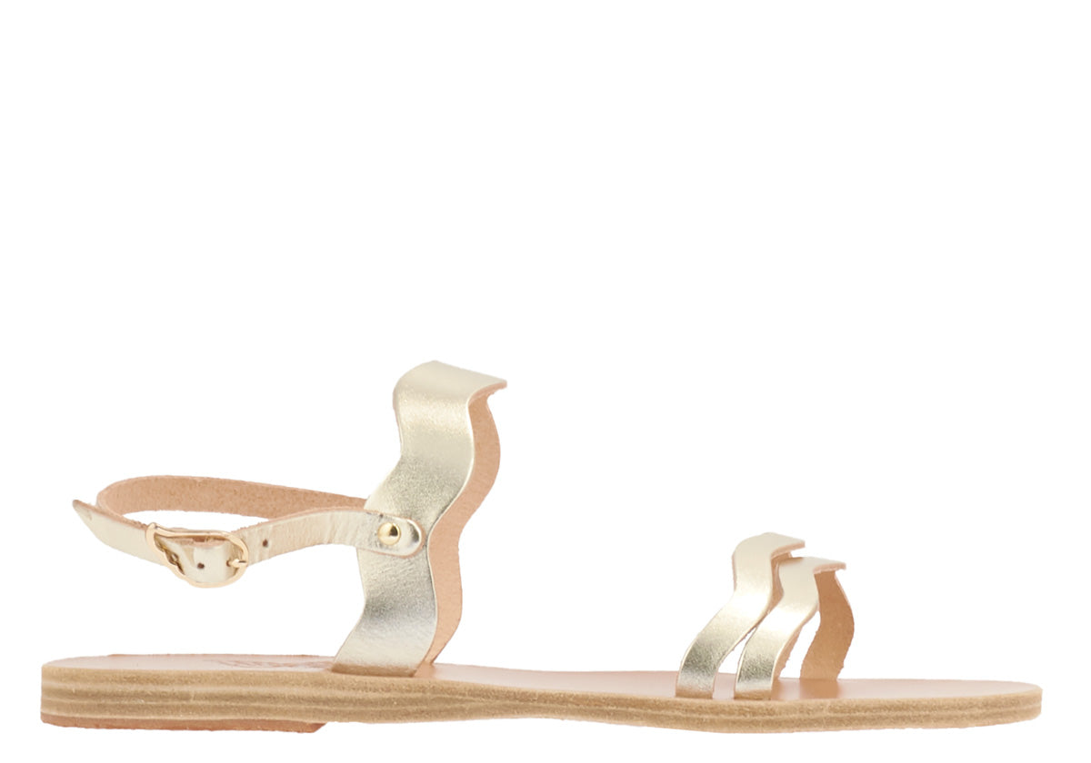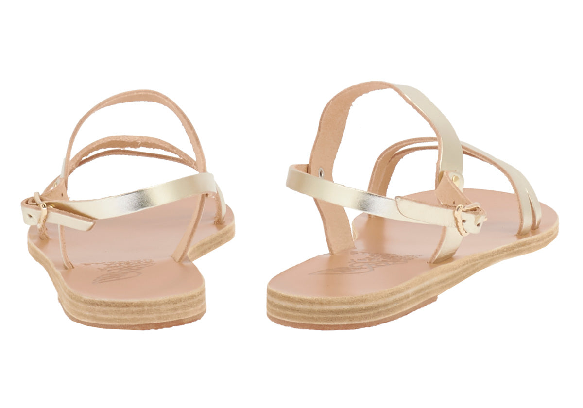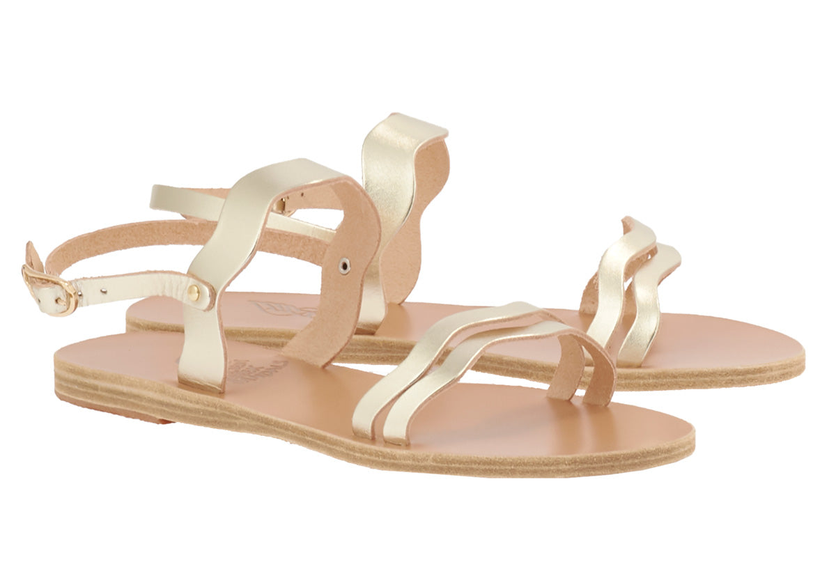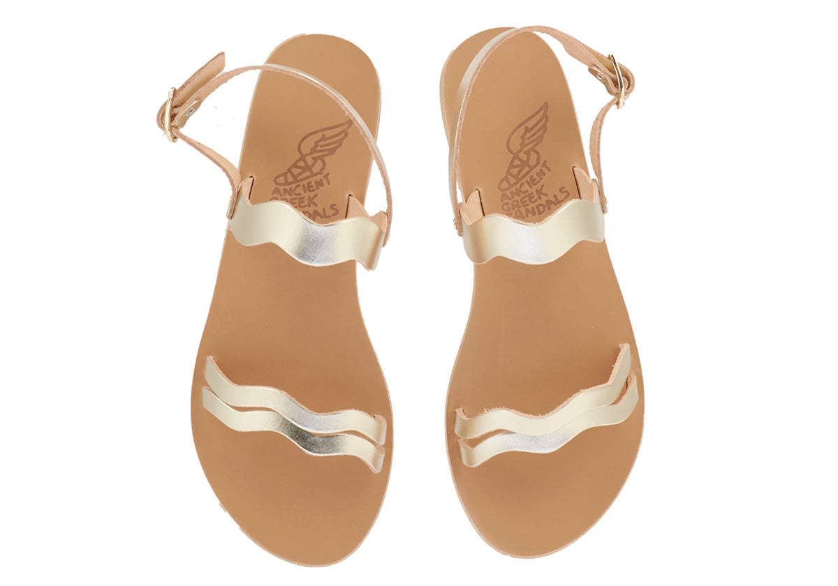 Ancient Greek Sandals is inspired by the myth of the gifted sandal maker of Crete, known for crafting magical sandals for the gods. Handmade by skilled craftsmen using traditional techniques, the sandals feature raw, natural leather that ages beautifully over time. The signature champagne-colored winged buckle references the legend of Hermes' flying sandals. Made in Greece.