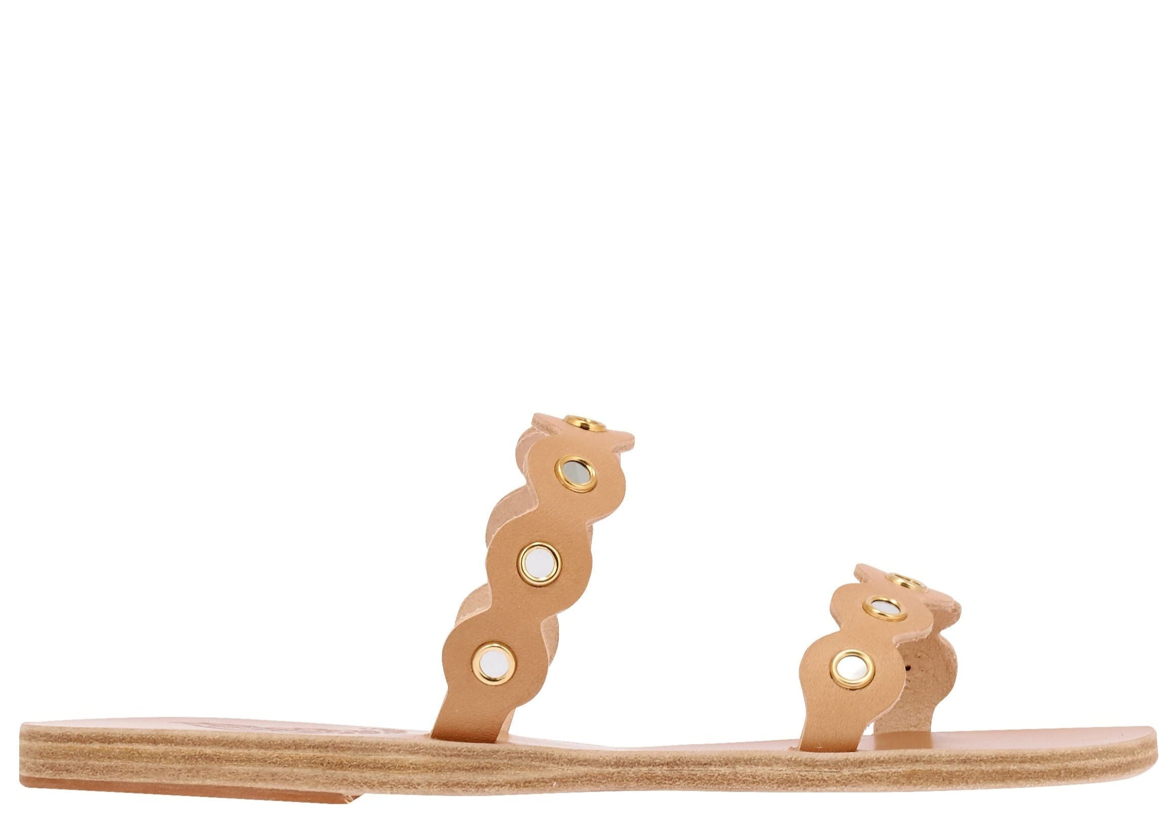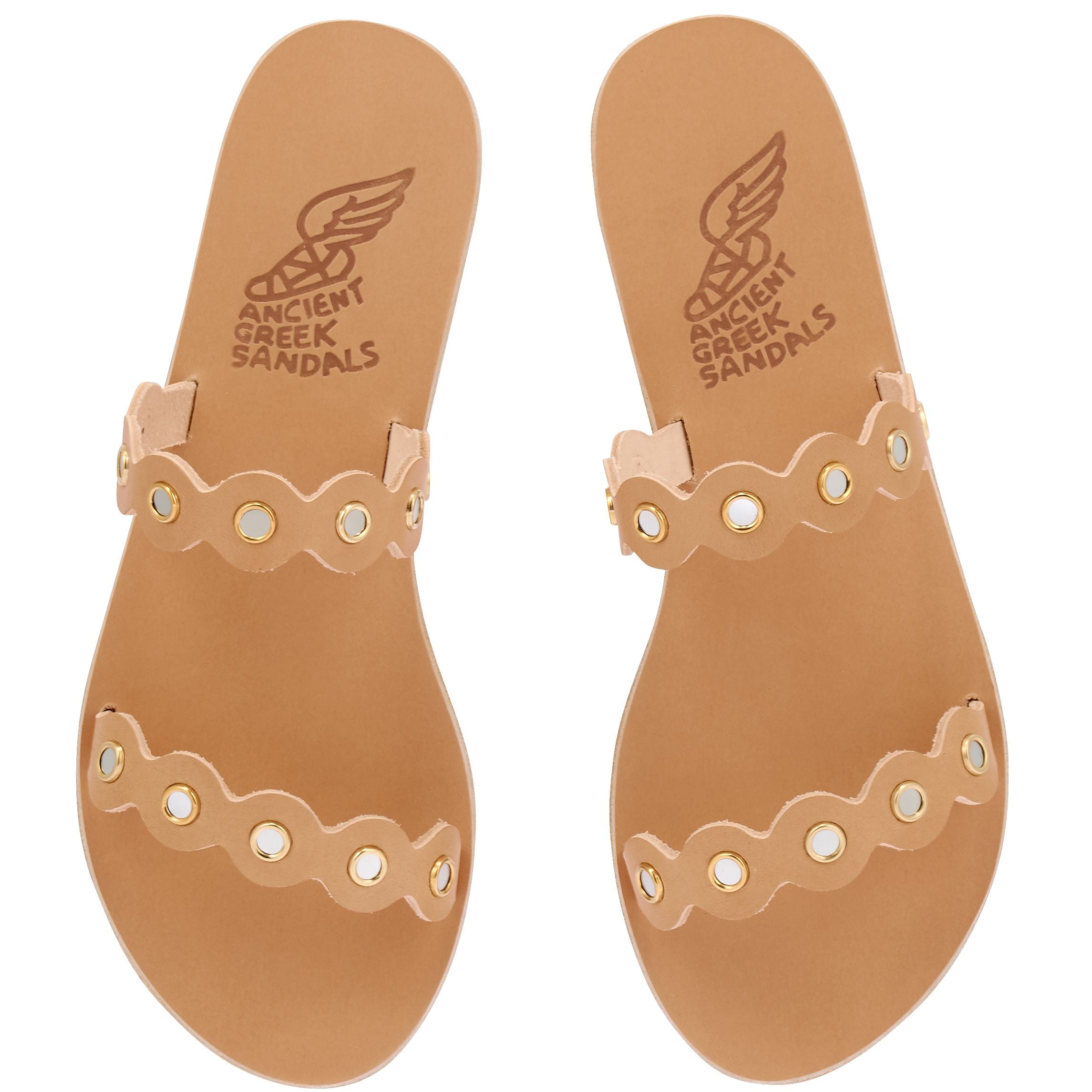 Ancient Greek Sandals is inspired by the myth of the gifted sandal maker of Crete, known for crafting magical sandals for the gods. Handmade by skilled craftsmen using traditional techniques, the sandals feature raw, natural leather that ages beautifully over time. The signature champagne-colored winged buckle references the legend of Hermes' flying sandals. Made in Greece.