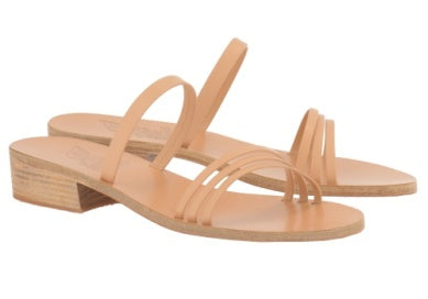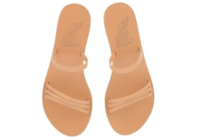 Ancient Greek Sandals is inspired by the myth of the gifted sandal maker of Crete, known for crafting magical sandals for the gods. Handmade by skilled craftsmen using traditional techniques, the sandals feature raw, natural leather that ages beautifully over time. The signature champagne-colored winged buckle references the legend of Hermes' flying sandals. Made in Greece.