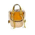 The Habanera bag has two leather handles and can be transformed into a crossbody. In this style the two yellowish suede flaps and lemon yellow handles are decorated with all around thick stitched edge and a waxed cord double threading in senape and ecru' color, entirely handmade. The lining is made with a beige linen up-cycled fabric. All leather edges are hand painted and the basket is in black color. Inside a zip pocket. Inside a zip pocket. Hot stamped leather bottom.