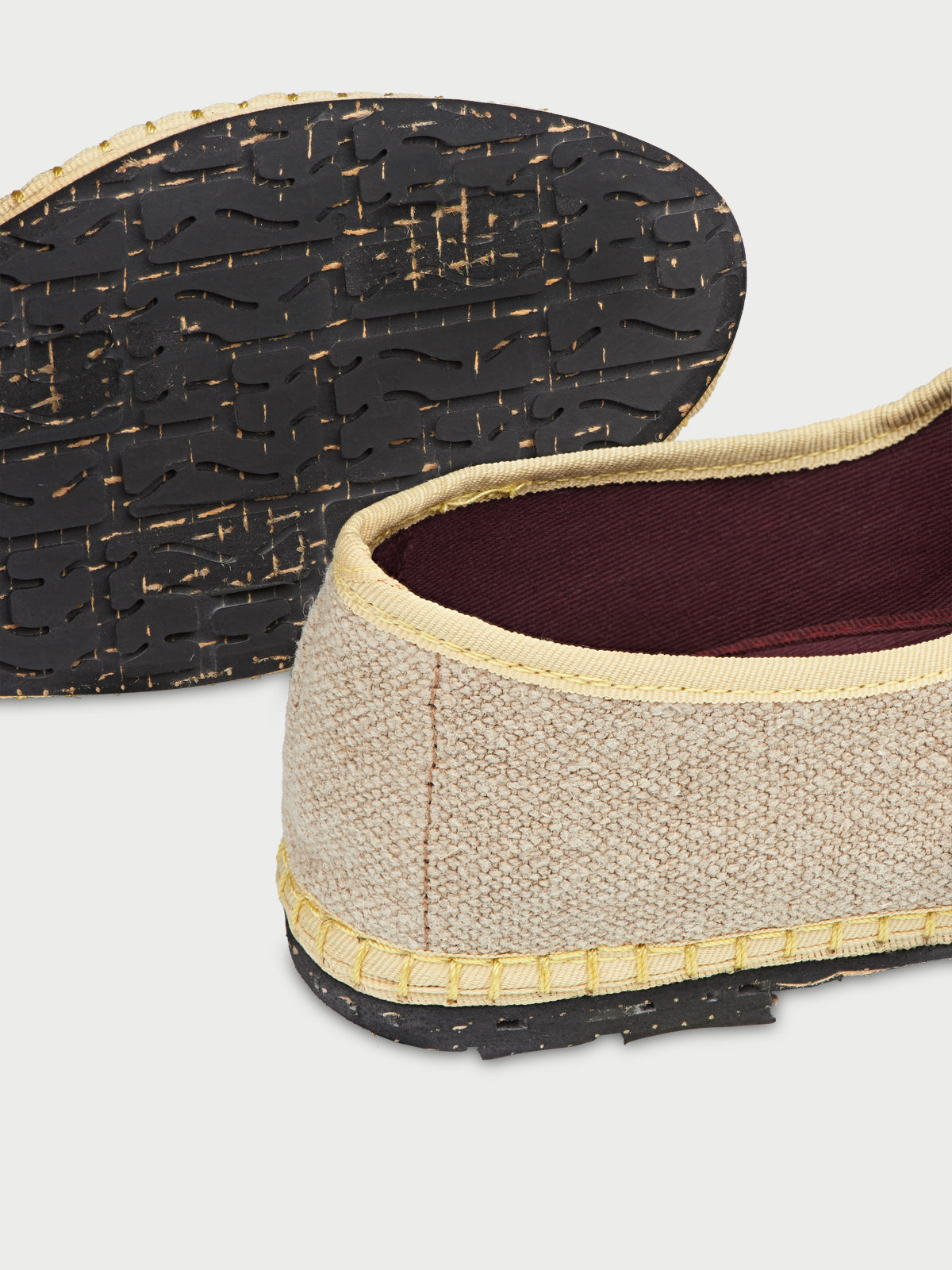 - The outside of the shoe is 100% linen, and the inside of the shoe is 100% organic cotton with anti-bacterial treatment.