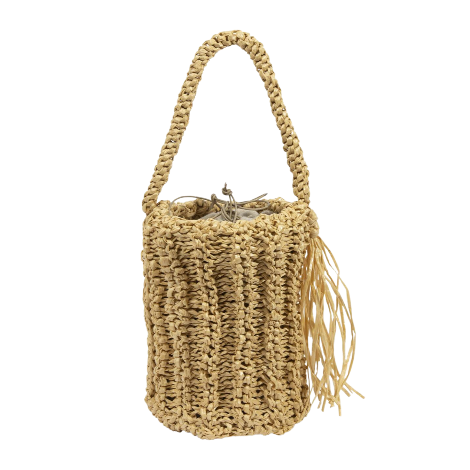Medium sized women's bucket bag entirely hand-knitted. Perfect for all seasons, it ensures capacity and functionality.