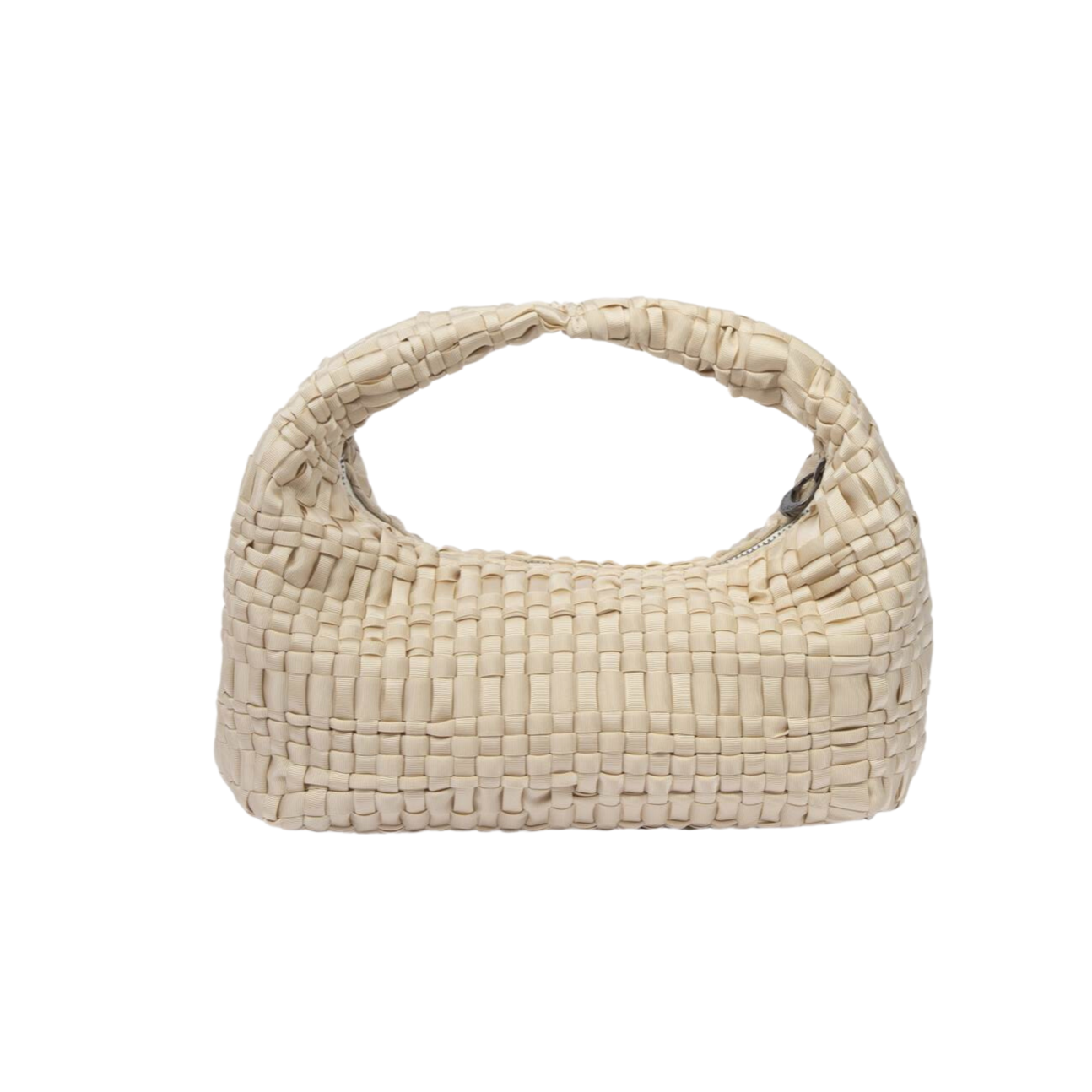 Maria La Rosa "Rebirth" top handle bag in woven ribbon
