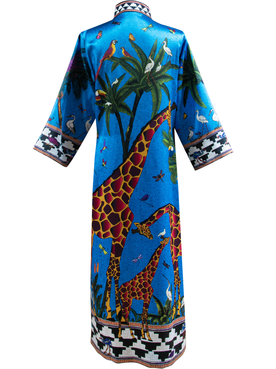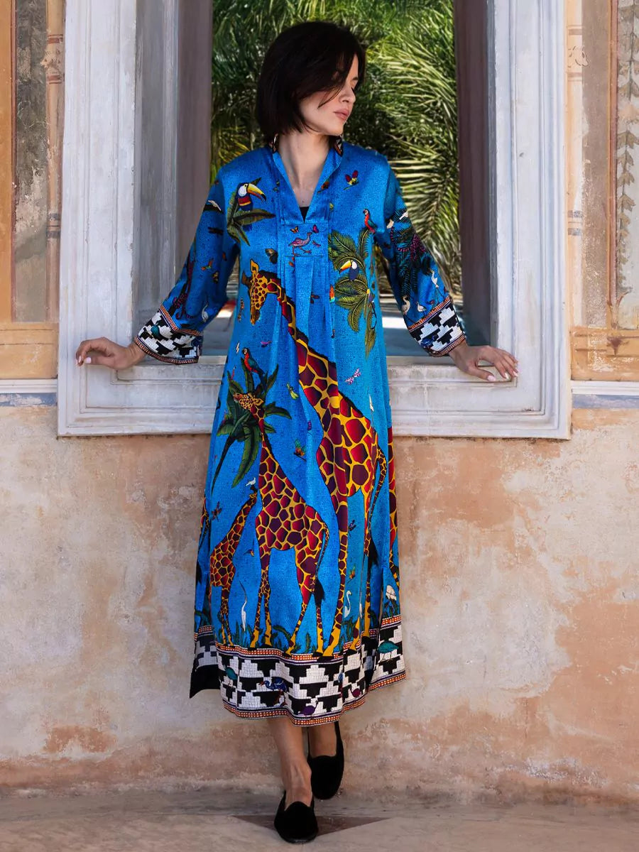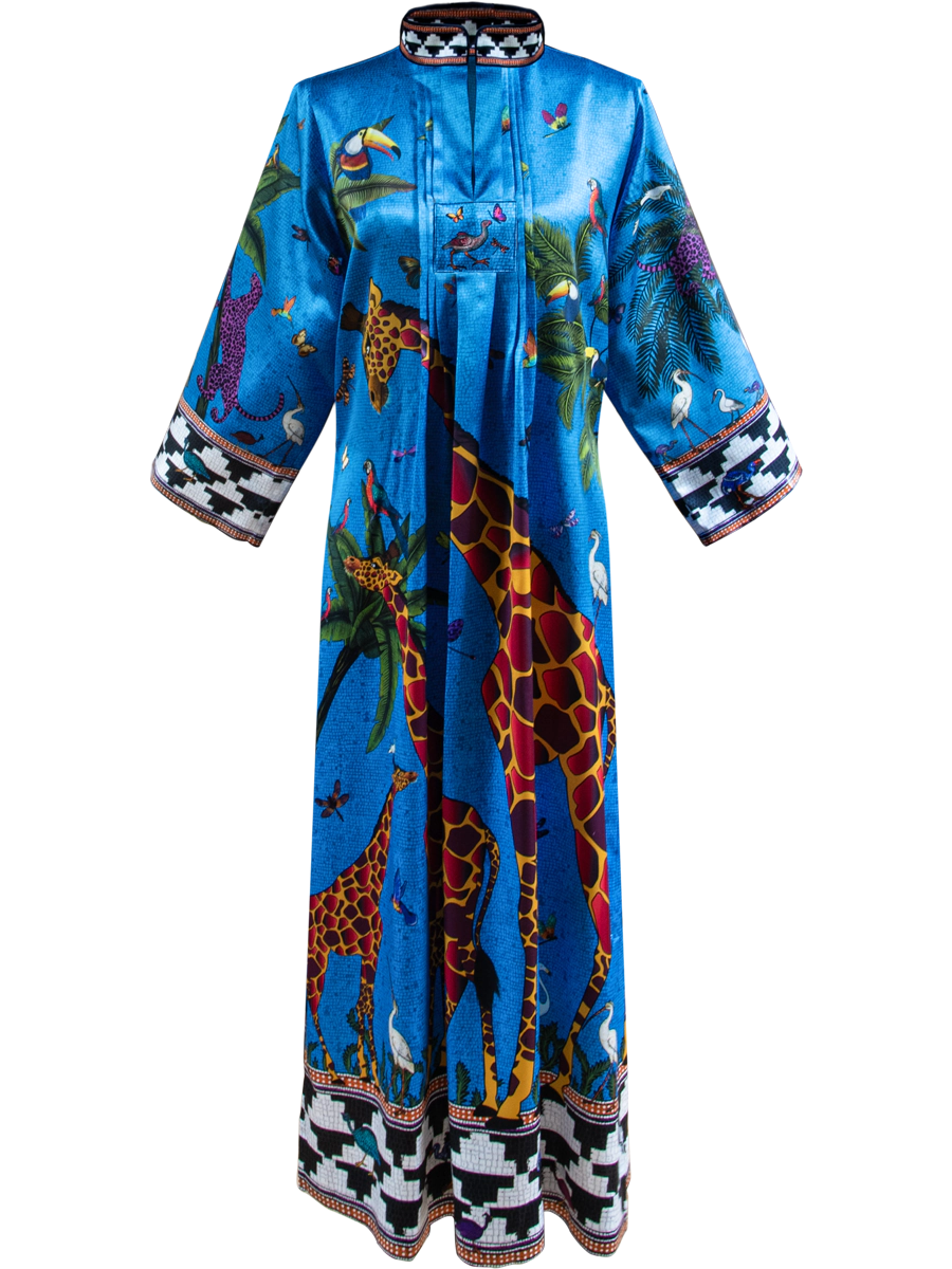 Ortigia Sicilia Silk Giraffe Blue Jewel Kaftan