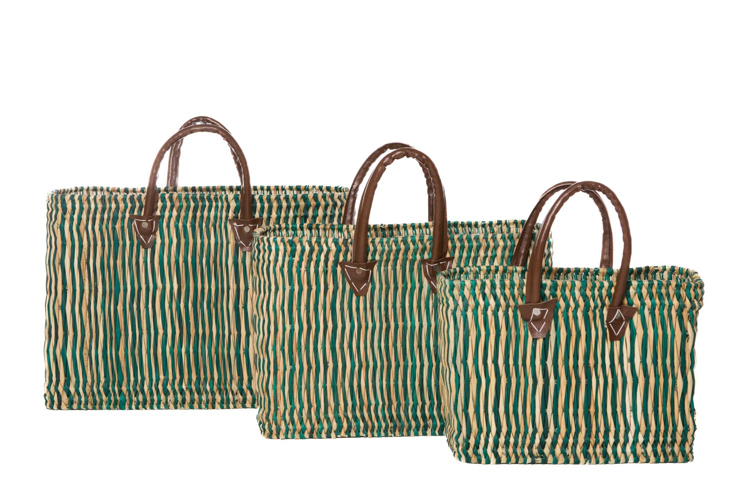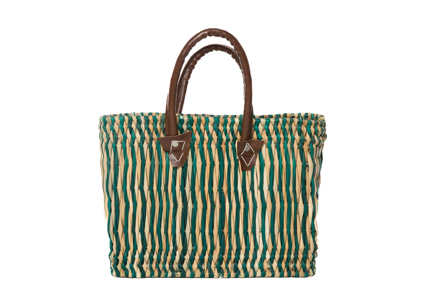 Handwoven in Morocco with bold rattan stripes—a cheerful everyday tote.