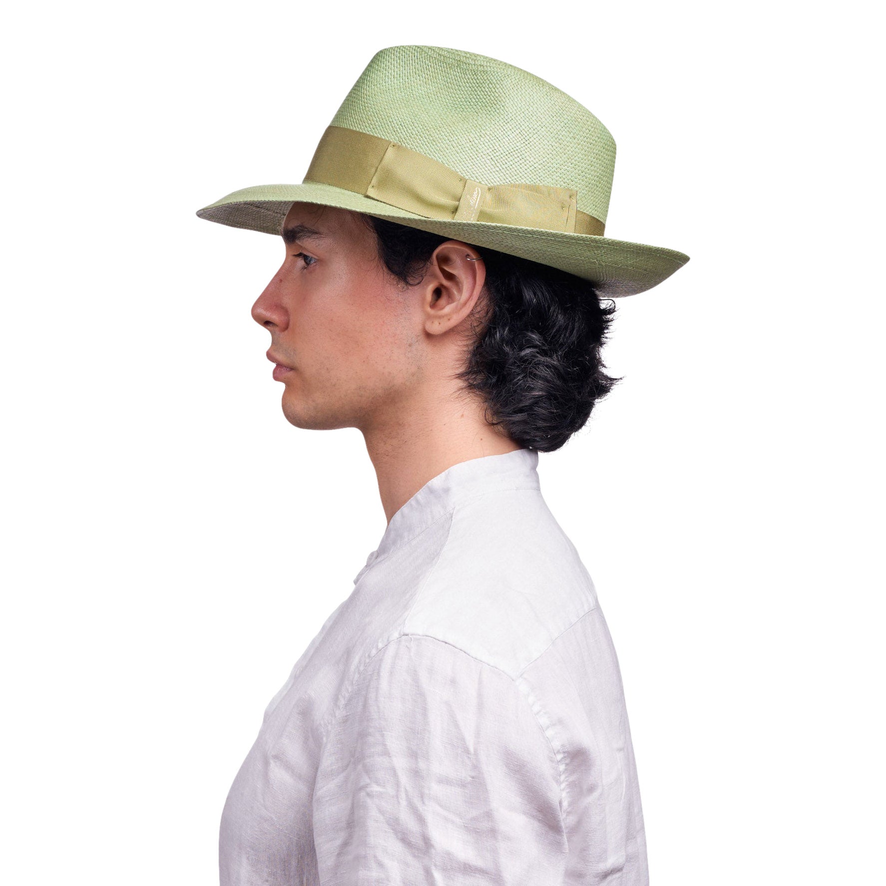 The Panama hat was first created in 1835. The production of Borsalino straw hats begins in Ecuador, where the local straw is harvested from the stalks of the toquilla palm tree, boiled and dried under the sun. Then Ecuadorian artisans weave it by hand, making extremely fine semi-finished cloches. After careful quality control, the cloches are sent to the Alessandria Maison. They are again inspected before initial shaping: a hydraulic pressure machine creates the shape and size of the hat. The operation is repeated to create the traditional Borsalino shape. The excess straw is trimmed and the edge of the brim is sewn. The hat is then stiffened and left to slowly dry. Then the inner leather band is sewn, followed by a final shaping with the hydraulic press. The ribbon is added and the brim is stiffened before the hat is ready for the final steps: embellishments, stitching, final inspection and packaging - all completed by hand. This is the art of hat-making.