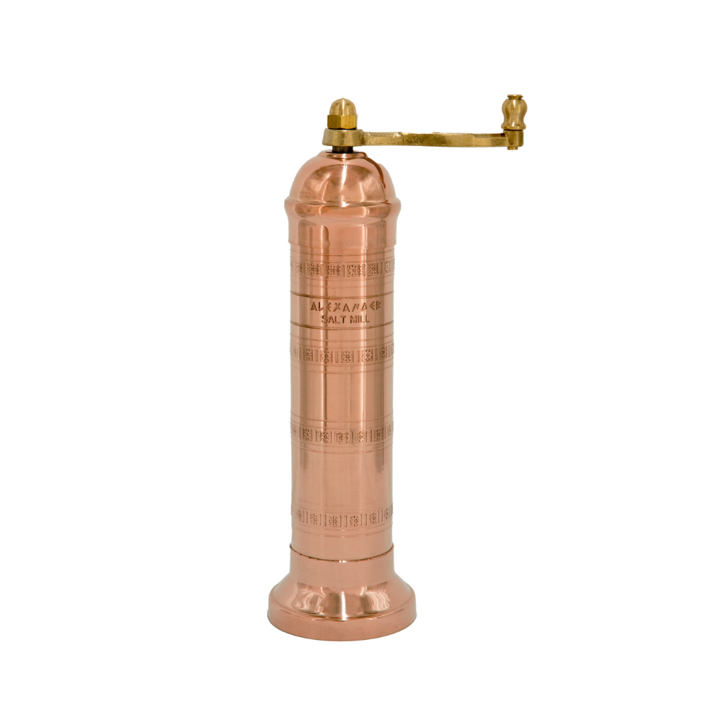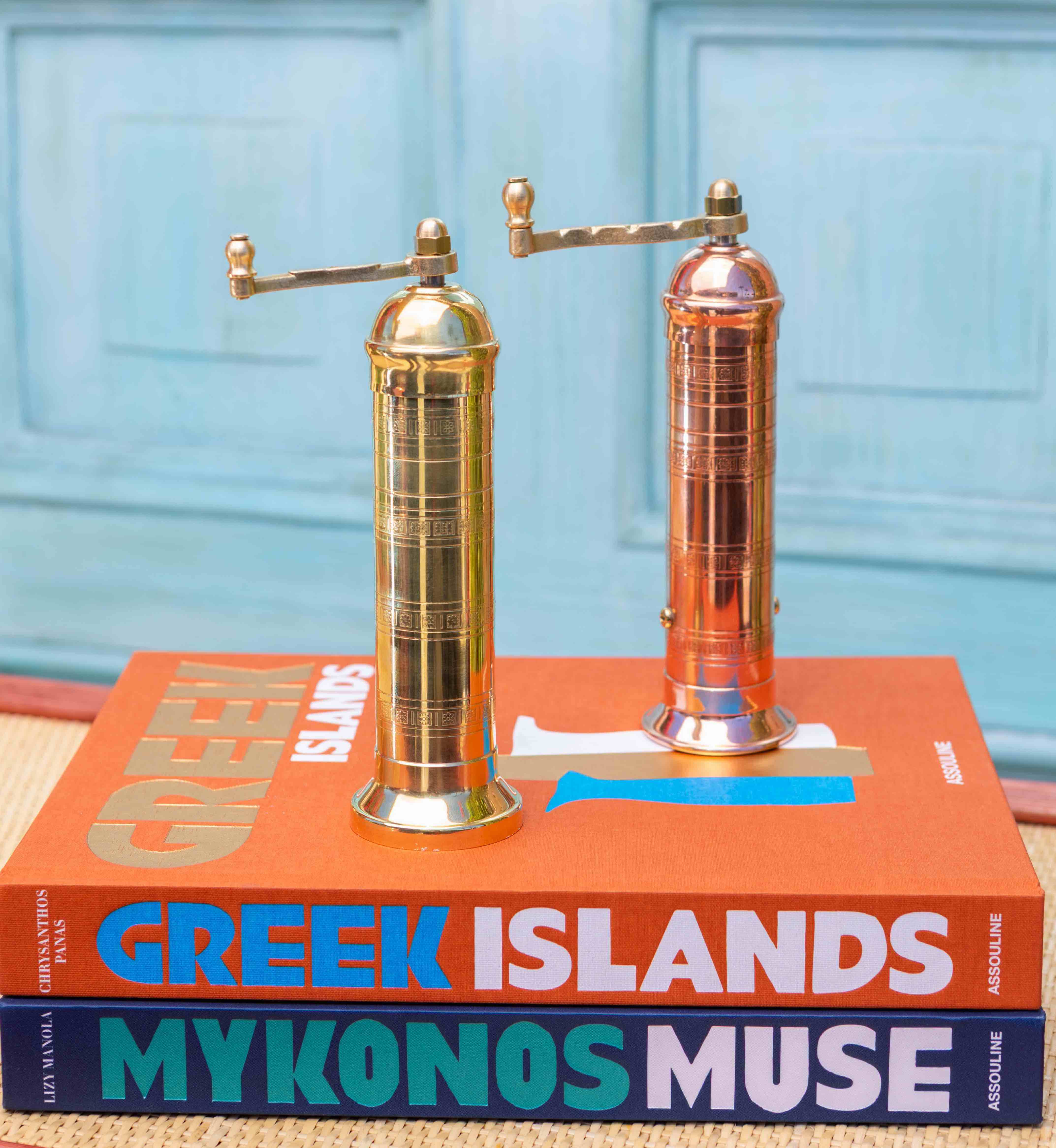 The Original Greek Mill is a unique piece of European tradition that is functionally the best in the world and handmade to exacting standards. Based on a coffee mill that was used by Greek soldiers in the early 20th century, the mill design includes a flanged base for stability and a durable all-metal body. Built as a pair with the pepper mill, the salt mill a plastic grinding mechanism, as salt corrodes metal. Available in copper and brass.
