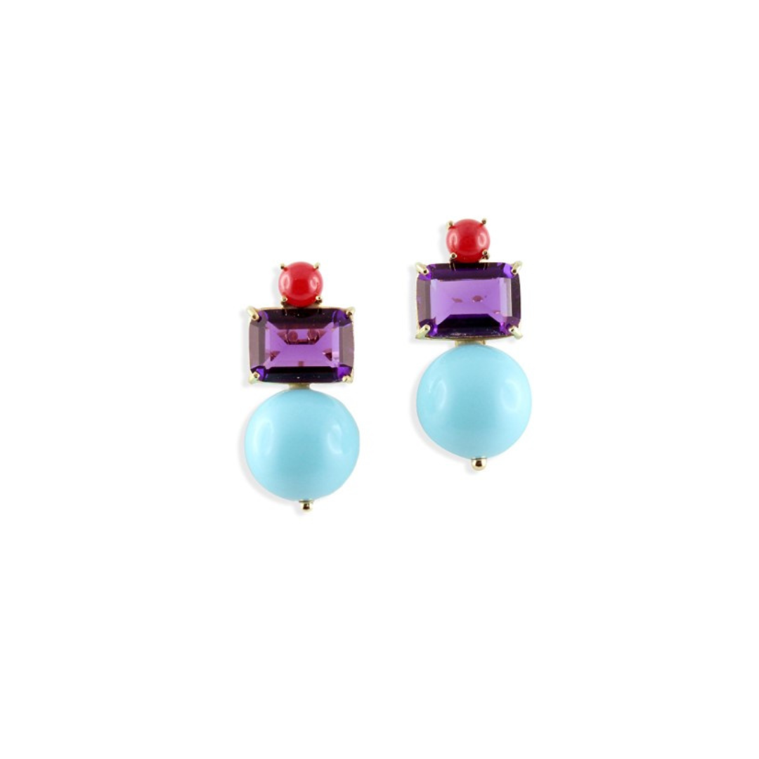 Grazia & Marica Vozza Turquoise Boule, Amethyst & Red Coral Drop Earrings
