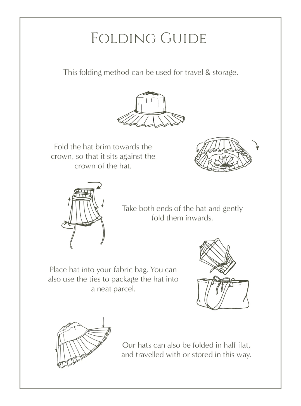 - When not being worn, store your hat flat, or with the brim folded up.