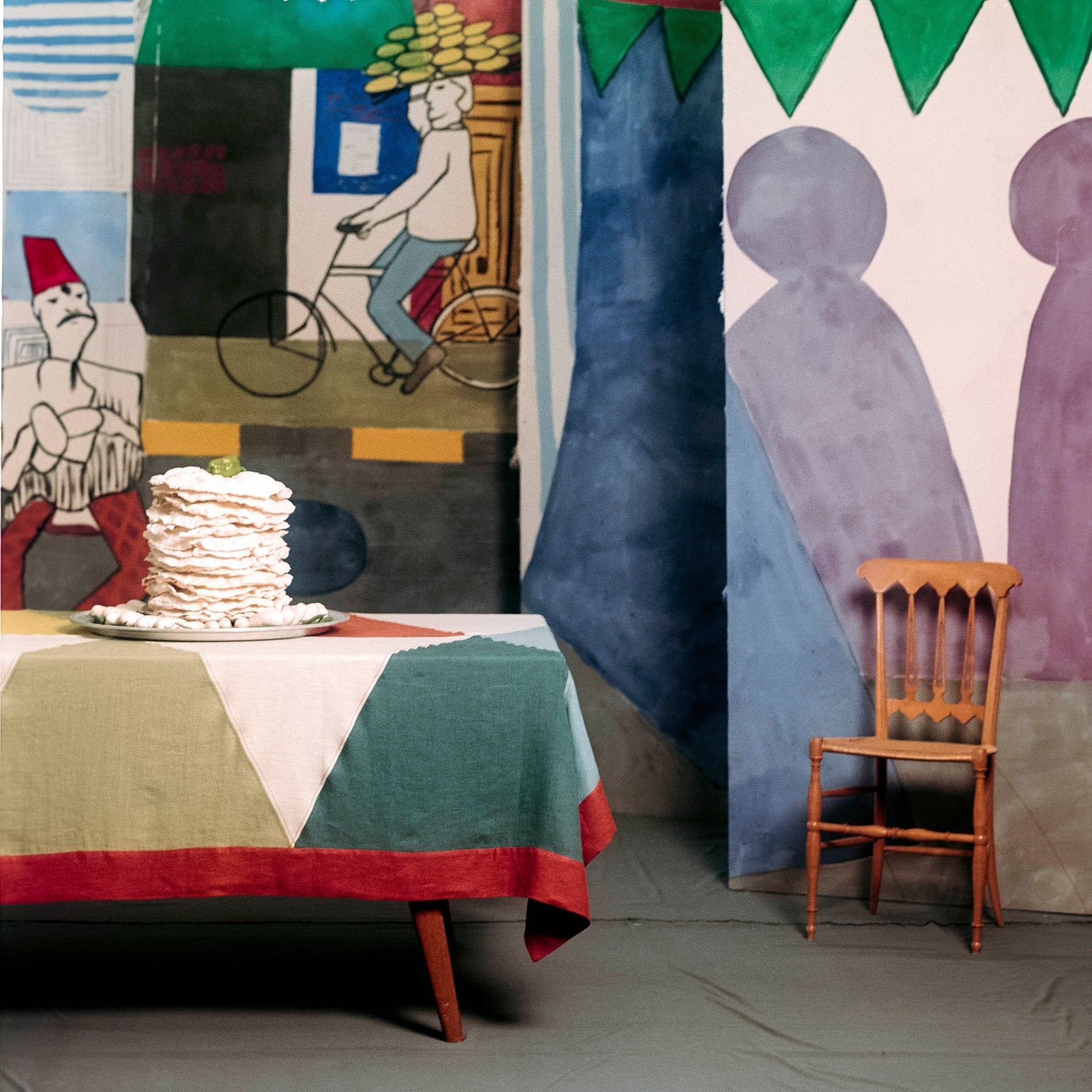A vibrant patchwork of 100% linen, the Harlequin Tablecloth is pieced together by master artisans at the ANŪT atelier in Cairo. It brings a feast of color, soft texture and timeless design to your dining space.Bold yet balanced with its pyramidal patchwork, the Harlequin Tablecloth transforms your dining table into a canvas of colour in warm tones of terracotta, golden yellow, and teal blue.