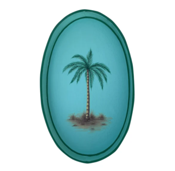 Les Ottomans Hand-painted Iron Tray Aqua Palm Tree
