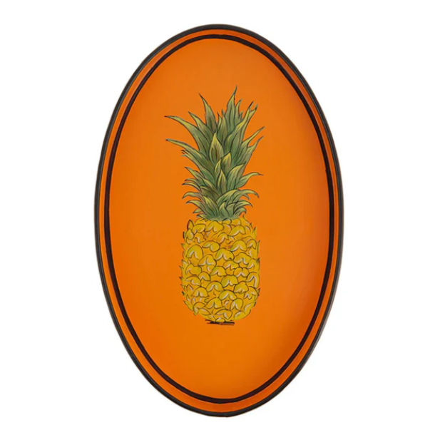 Les Ottomans Hand-painted Iron Tray in Orange with Artichoke