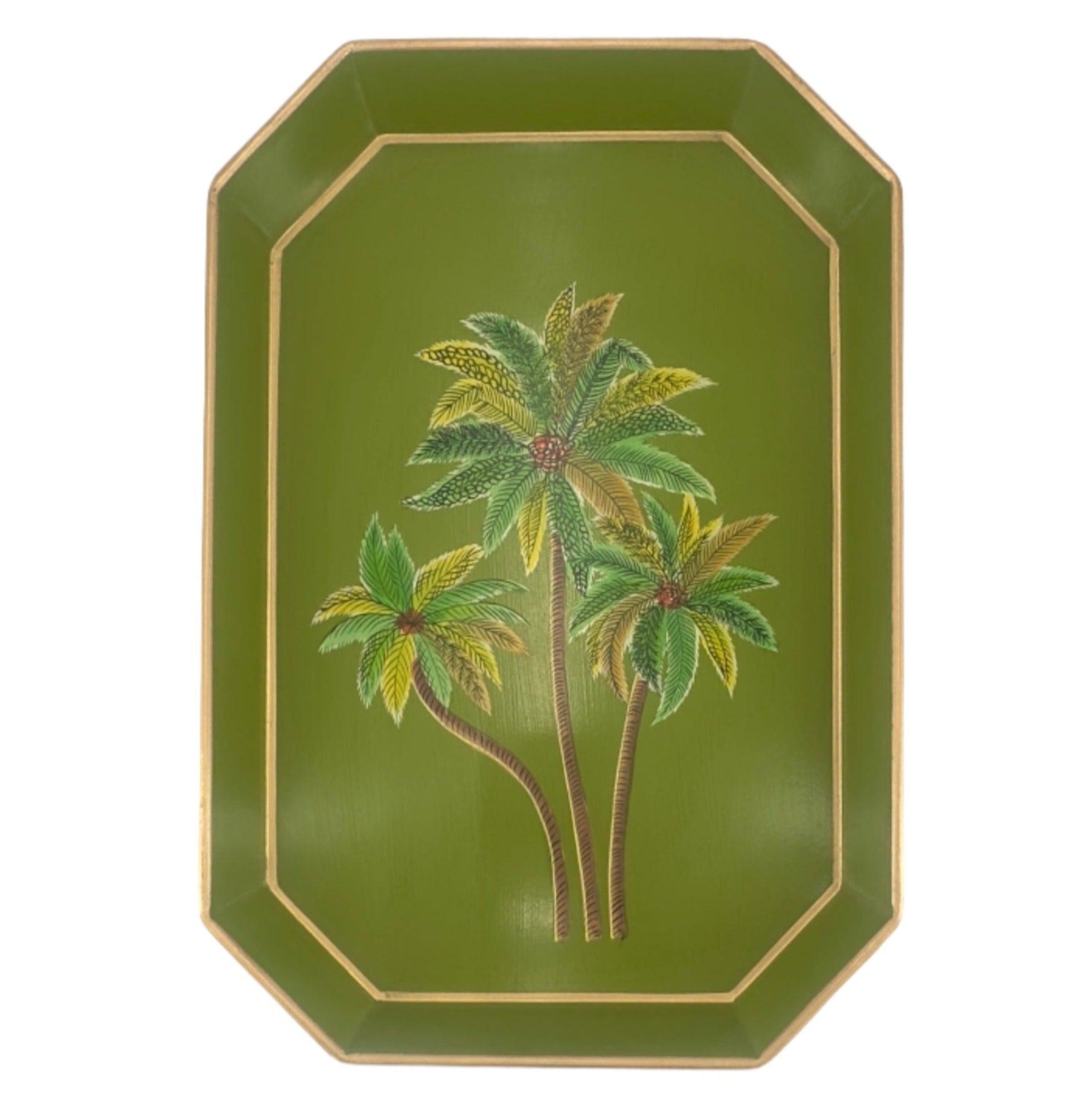 Les Ottomans Hand-painted Iron Tray Green Palm Trees (IT 226)