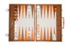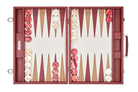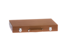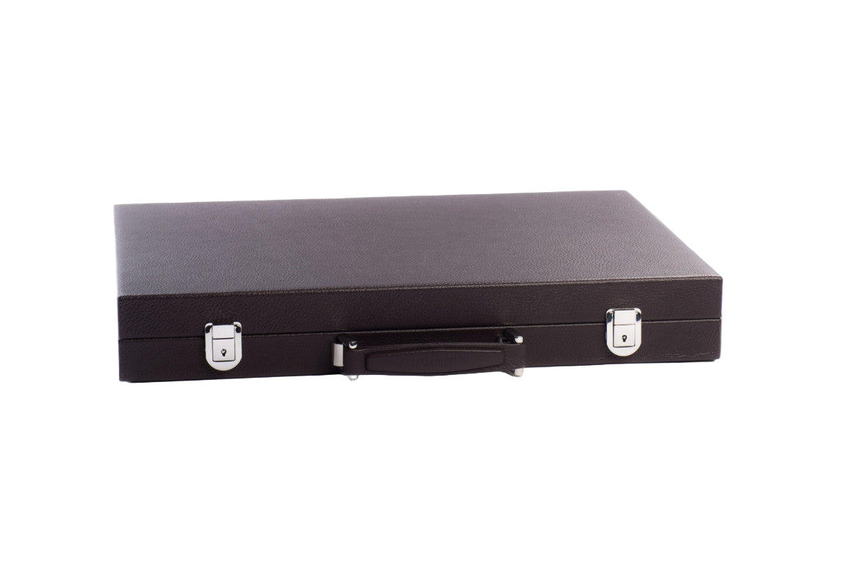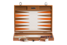 This backgammon set features a luxurious leather exterior, leather interior inlays, and nickel locks. Available in a range of beautiful colors. Comes in a gift box.