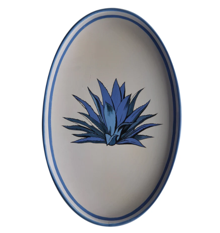 Les Ottomans Hand-painted Iron Tray Blue Succulent