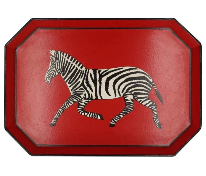 Les Ottomans Hand-painted Iron Tray Red Zebra (IT 217)