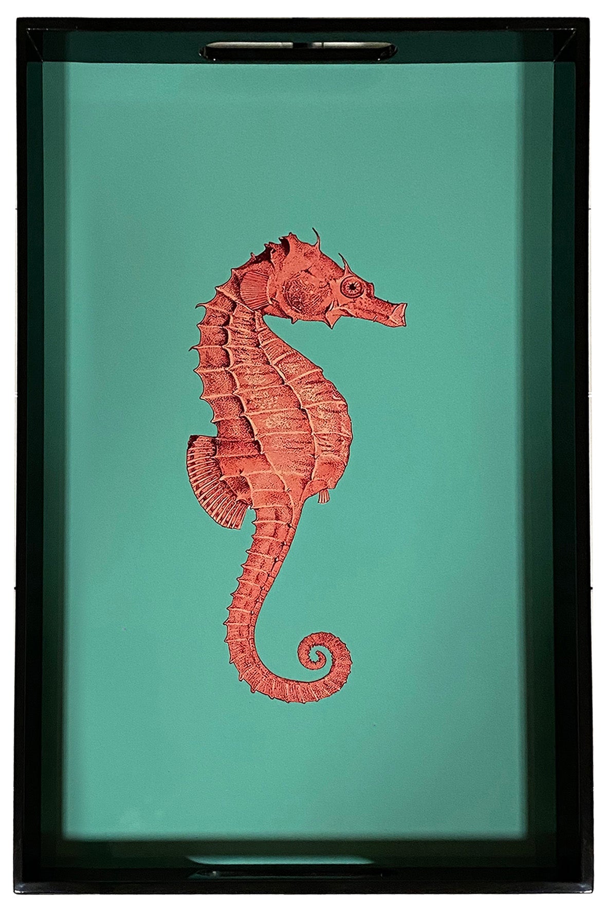 Les Ottomans Hand-painted Lacquered Tray Orange Seahorse (LT 15)