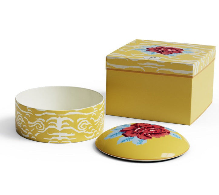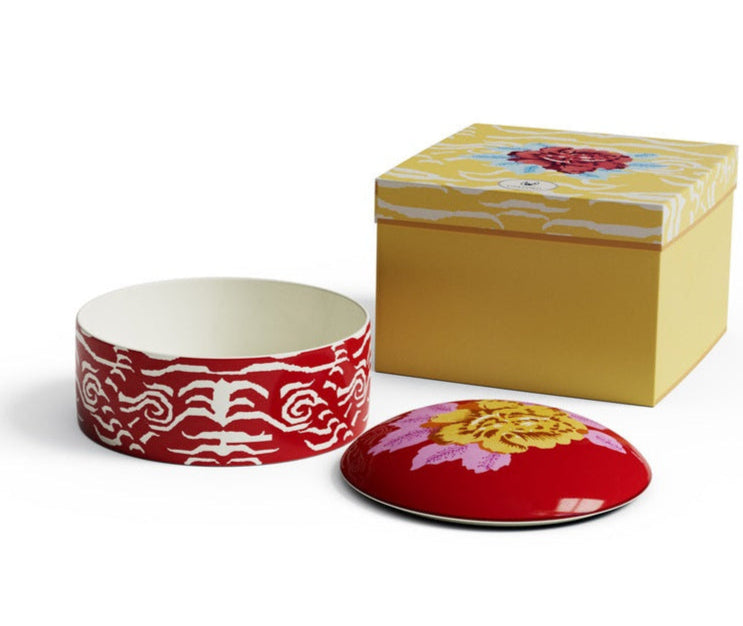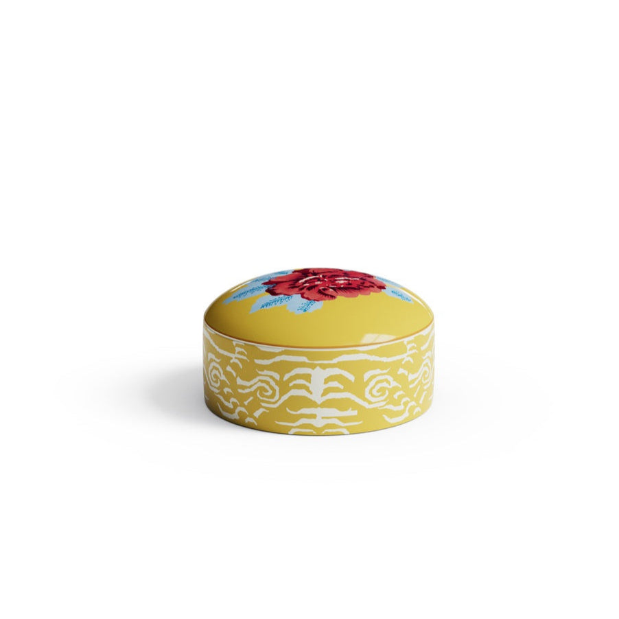 A vessel of storytelling and artistry, this porcelain trinket box blends utility with decorative charm. This collectable can store keepsakes beautifully and features intricate motifs. It complements Lisa Corti’s porcelain, textiles, and glassware for a layered, maximalist, yet sophisticated tablescape.