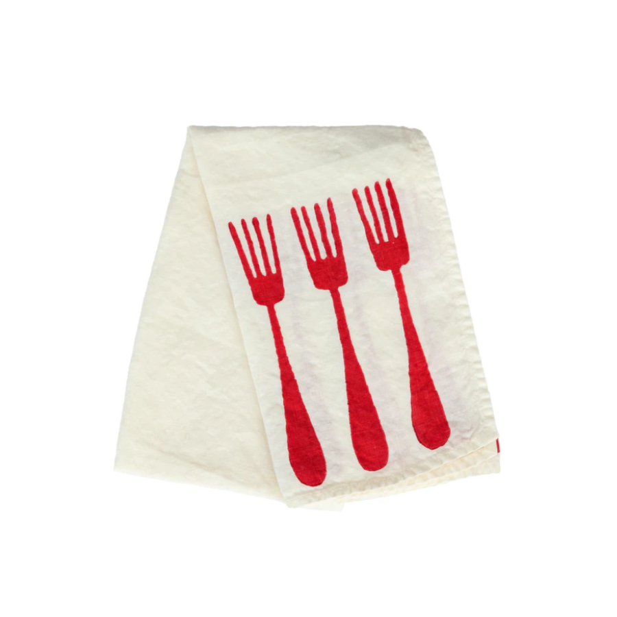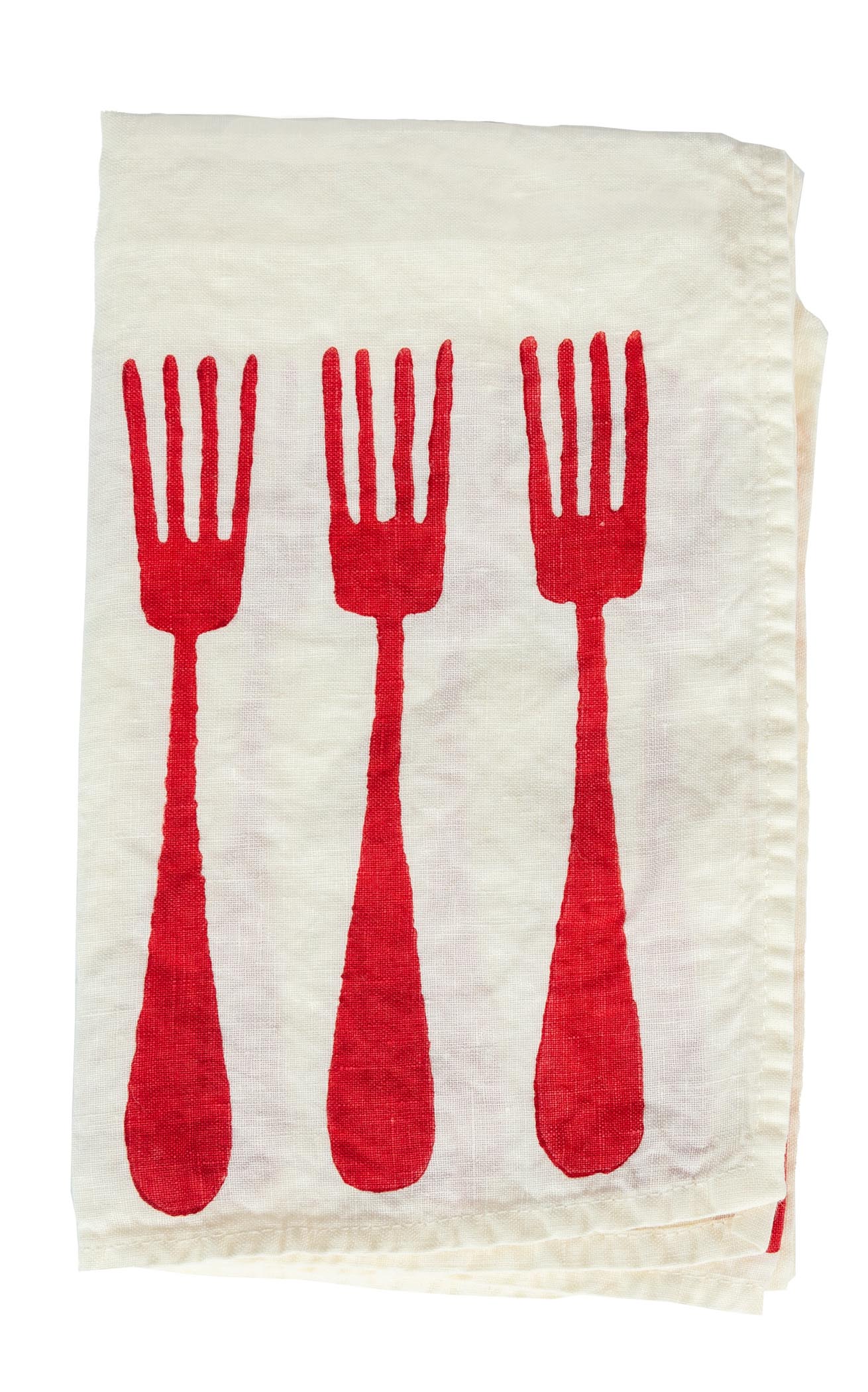 Stamperia Bertozzi Forchette Linen Tea Towel (Red)
