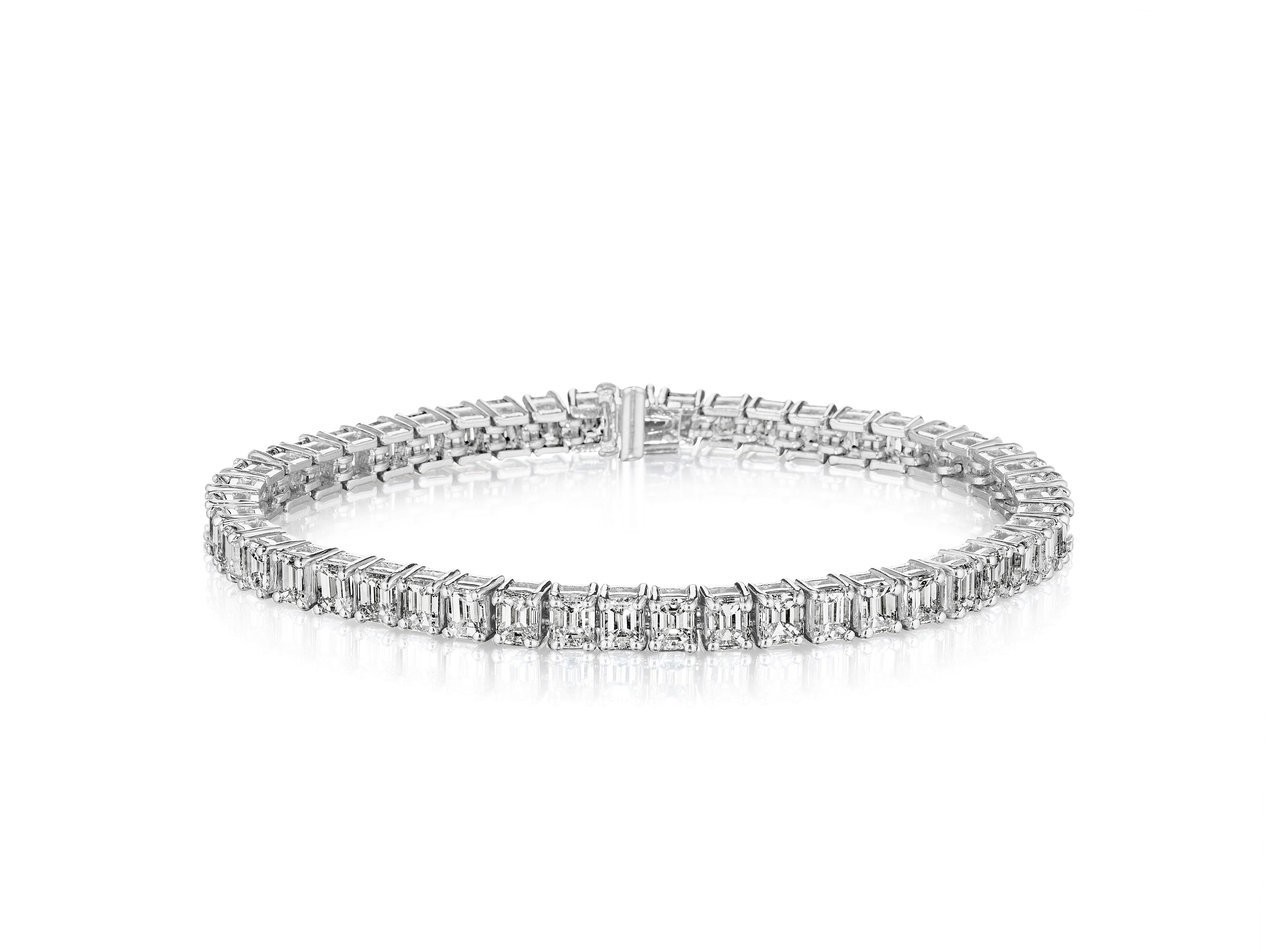 Notes: There is nothing more classic than an emerald cut diamond and platinum tennis bracelet.