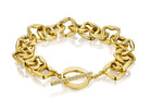 An instant heirloom, this 18K yellow gold bracelet features a distinctive link design and a toggle clasp set with diamonds.